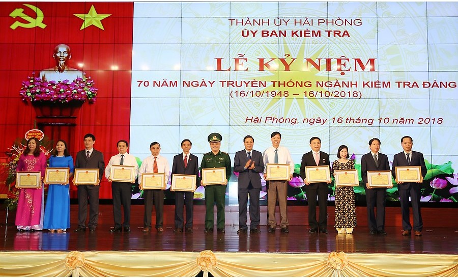 Nhân dịp này, Ban Chấp hành Đảng bộ thành phố Hải Phòng tặng ngành Kiểm tra Đảng bức trướng với nội dung: “Đoàn kết – Trung thành – Tận tụy – Kỷ cương– Liêm khiết”; UBND thành phố tặng bằng khen 6 tập thể và 6 cá nhân.