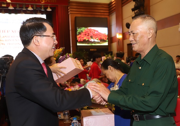 Tại buổi tiếp xúc, sau khi nêu những nét nổi bật về tình hình phát triển của thành phố, đồng chí Nguyễn Văn Tùng bày tỏ lòng tri ân đến các gia đình liệt sĩ, thương binh, người có công với cách mạng.