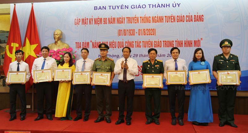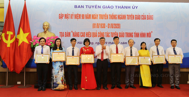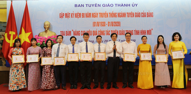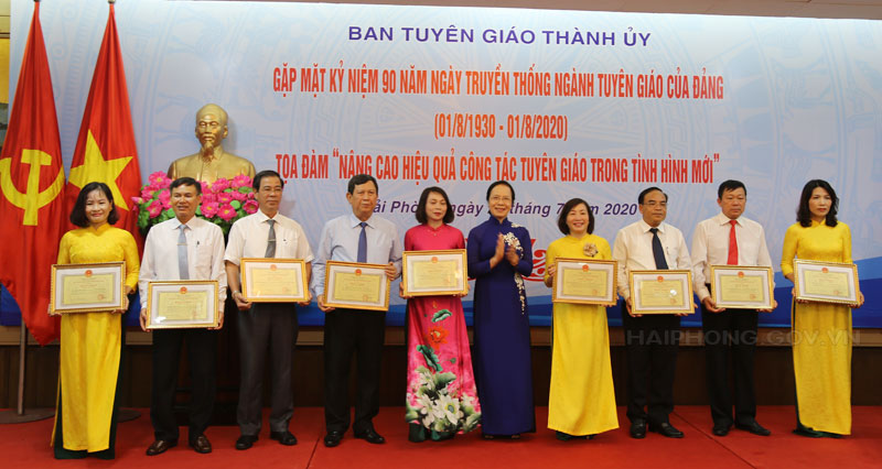 Cũng tại cuộc gặp mặt kỷ niệm 90 năm Ngày truyền thống ngành Tuyên giáo của Đảng, UBND thành phố tặng Bằng khen 19 tập thể, 20 cá nhân; Ban Tuyên giáo Trung ương tặng kỷ niệm chương “Vì sự nghiệp Tuyên giáo” 13 cán bộ ngành Tuyên giáo thành phố; Ban Tuyên giáo Thành ủy tặng Giấy khen 8 tập thể, 7 cá nhân có thành tích xuất sắc trong công tác tuyên giáo 5 năm (2015÷2020).
