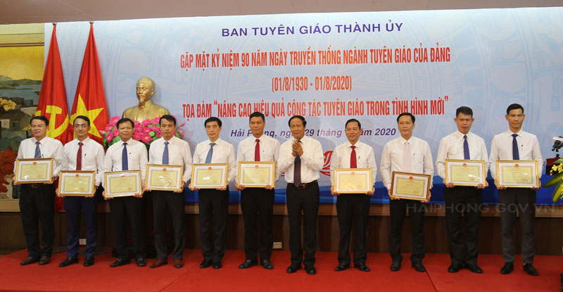 Cũng tại cuộc gặp mặt kỷ niệm 90 năm Ngày truyền thống ngành Tuyên giáo của Đảng, UBND thành phố tặng Bằng khen 19 tập thể, 20 cá nhân; Ban Tuyên giáo Trung ương tặng kỷ niệm chương “Vì sự nghiệp Tuyên giáo” 13 cán bộ ngành Tuyên giáo thành phố; Ban Tuyên giáo Thành ủy tặng Giấy khen 8 tập thể, 7 cá nhân có thành tích xuất sắc trong công tác tuyên giáo 5 năm (2015÷2020).