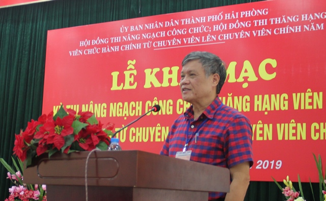 Sáng 25/4, tại Trung tâm Giáo dục thường xuyên Hải Phòng, Hội đồng thi nâng ngạch công chức lên chuyên viên chính và Hội đồng thi thăng hạng viên chức hành chính lên chuyên viên chính tổ chức kỳ thi nâng ngạch công chức từ ngạch chuyên viên lên ngạch chuyên viên chính, thăng hạng viên chức hành chính từ chuyên viên lên chuyên viên chính năm 2018.