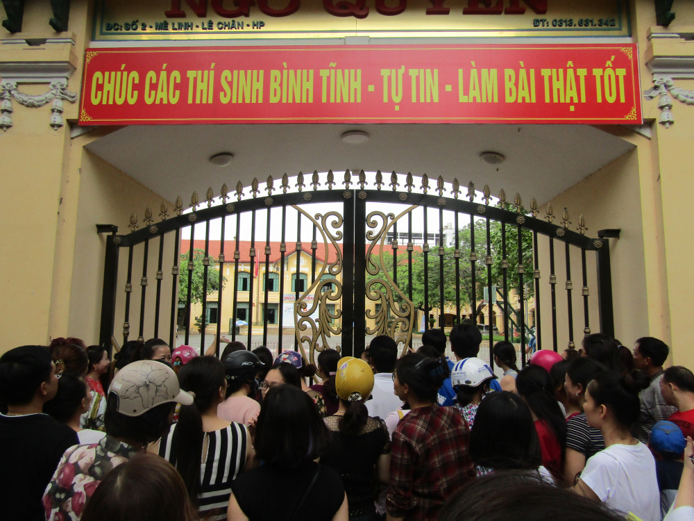 Các điểm thi Trường THPT Trần Nguyên Hãn, THPT Lê Quý Đôn và đáng bất ngờ hơn là THPT Lê Chân, không khí thi cử năm nay có phần “nóng” hơn so với năm trước khi số thí sinh sẽ bị loại ước tính có thể lên đến khoảng 200 thí sinh, cao hơn so với các “trường điểm” truyền thống THPT Ngô Quyền, THPT Thái Phiên.