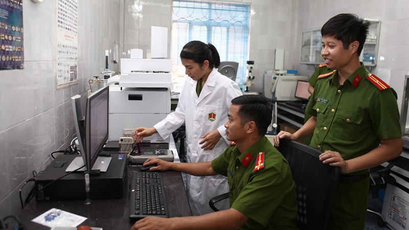 CBCS phòng KTHS đang tiến hành xét nghiệm, giám định mẫu vật (ảnh: Phan Tuấn)