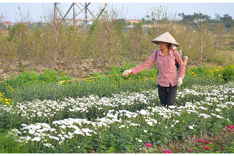 Những ngày này, tại các làng trồng hoa Tết của thành phố như Đặng Cương, Hồng Thái (huyện An Dương), Đằng Hải (quận Hải An) tấp nập cảnh người dân chăm sóc và khách hàng đến xem, mua bán hoa. Vất vả cả năm chăm sóc và vào lúc giáp tết, bà con nơi đây “ăn, ngủ cùng hoa…”
