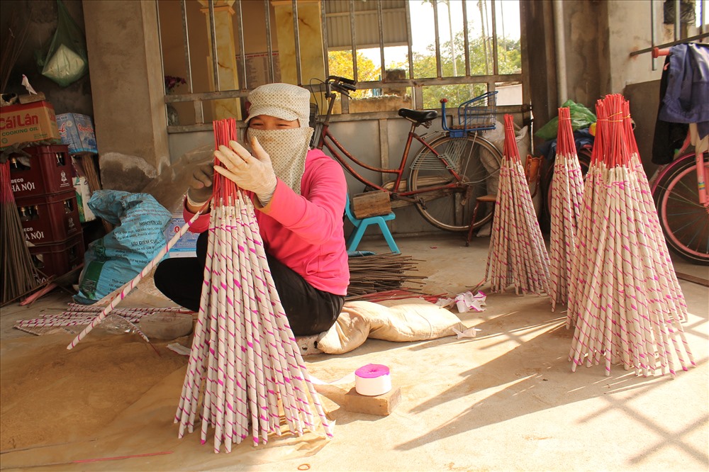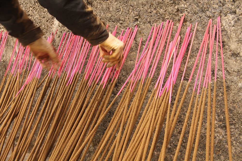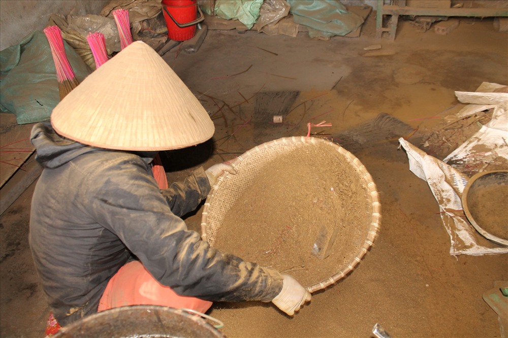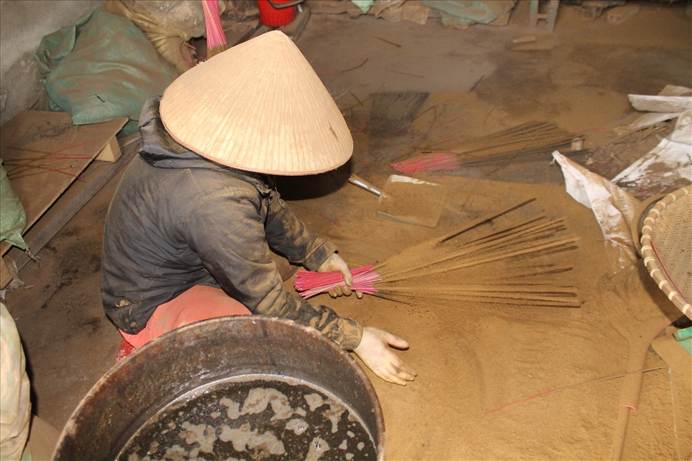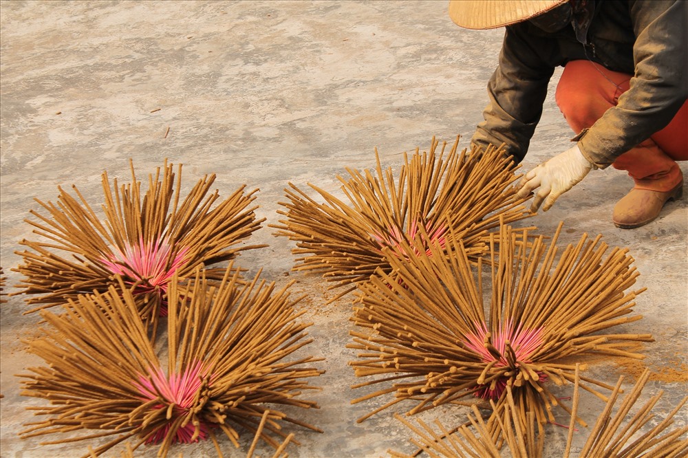 Hương Kiến Bái có một mùi thơm đặc trưng rất riêng, không thơm nồng, không bị pha loãng, được tạo nên từ những nguyên liệu tự nhiên như: rễ bài, quế, mộc hương, cam thảo, đinh hương… Ảnh: Mai DungCác nguyên liệu sau khi phơi khô được tán thành nhỏ, sàng lọc kỹ càng để thành bột mịn. Sau đó, pha trộn với nhau theo tỉ lệ nhất định để tạo nên hương thơm đặc trưng. Ảnh: Mai DungSau đó, người thợ làm hương nhúng nước ngập 3/4 chân hương, phủ keo, sau đó, nhanh tay se bột để bột bám keo, phủ đều từng cây hương. Ảnh: Mai DungSau khi phủ qua 1-2 lớp bột bài, những người thợ làng hương Kiền Bái tiến hành làm hương cuộn bài truyền thống. Theo chị Lan, thôn 7, xã Kiền Bái, Thuỷ Nguyên, công đoạn này không khó nhưng đòi hỏi sự nhanh nhẹn, khéo léo để lớp giấy cuộn không bị rách, bó chặt lớp bột bài bên trong. Ảnh: Mai DungVới những người thợ lành nghề như chị Lan, chỉ mất chưa đầy 1 phút để cuộn hoàn chỉnh một cây hương. Sau đó, cẩn thận bó thành từng bó trước khi đóng gói, chuyển tới tay khách hàng. Ảnh: Mai DungNhững cây hương cuộn đều tăm tắp dưới tay người thợ lành nghề làng hương Kiền Bái. Ảnh: Mai DungNgoài hương cuộn truyền thống không thể thiếu trên ban thờ mỗi gia đình trong dịp Tết, làng hương Kiền Bái nổi tiếng với sản phẩm hương nhúng. Theo chị Phạm Thị Lan, chủ cơ sở hương bài Hưng Lan, hương nhúng cũng làm từ nguyên liệu như hương cuộn, song, chân hương sau khi nhúng nước, quét keo, được phủ 5 lần bột, sau đó phơi khô trước khi đóng gói. Ảnh: Mai DungNhững bó hương nhúng được phơi 1-2 nắng trước khi hoàn thiện, đóng gói. Ảnh: Mai DungNghề làm hương Kiền Bái được truyền từ thế hệ này qua thế hệ khác. Vào ngày nghỉ, cuối tuần, các em nhỏ phụ giúp bố mẹ, ông bà sắp xếp, đóng góp, dán nhãn mác từng bó hương trước khi giao cho khách hàng. Ảnh: Mai DungDịp Tết nguyên đán Canh Tý 2020, giá mỗi bó hương cuộn là 20.000 – 30.000 đồng/bó, hương nhúng được bán với giá 15.000 – 25.000 đồng/bó. Chị Phạm Thị Lan cho biết, mỗi ngày, gia đình sản xuất từ 30.000 – 50.000 cây hương, giao cho tiểu thương đến từ Hải Phòng và nhiều tỉnh, thành phố lân cận. Ảnh: Mai Dung