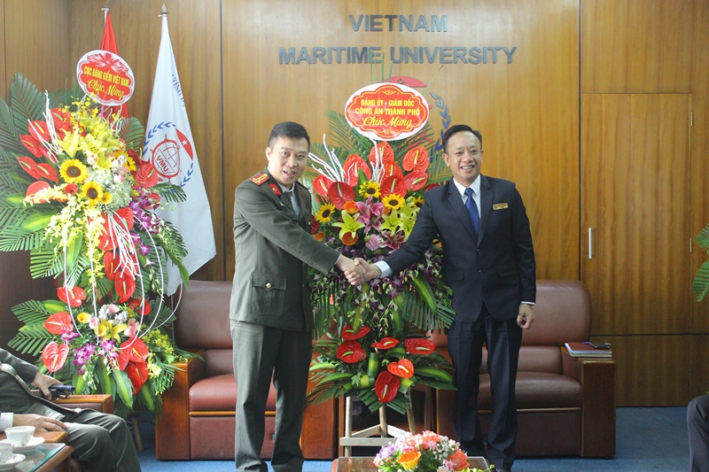 Đến thăm, chúc mừng Đại học Hàng hải Việt Nam và Đại học Hải Phòng, Thượng tá Lê Trung Sơn – Phó Giám đốc CATP thay mặt Đảng ủy, Ban Giám đốc CATP trân trọng gửi lời chúc sức khỏe cùng những tình cảm yêu thương nhất của của cán bộ chiến sĩ CATP tới tập thể cán bộ, giáo viên, nhân viên, người lao động 2 nhà trường.