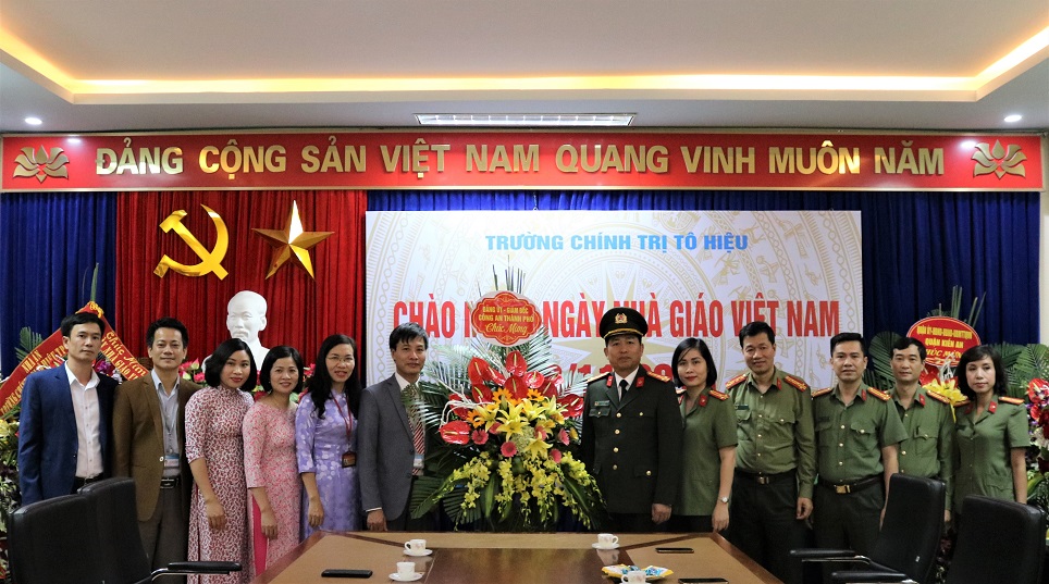 Tại trường Chính trị Tô Hiệu, Đại tá Vũ Thanh Chương thay mặt Đảng ủy, Ban Giám đốc cũng như cán bộ, chiến sỹ Công an thành phố tặng hoa chúc mừng Ban giám hiệu, cán bộ, giảng viên, công nhân viên chức đã và đang công tác tại nhà trường.