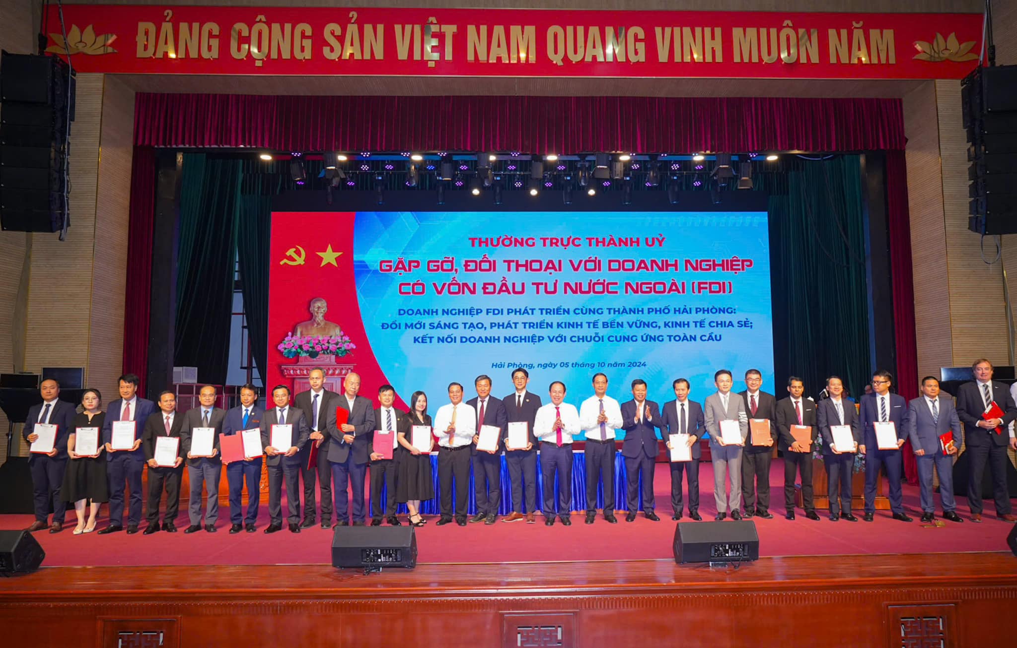 Sáng nay (5/10), Thường trực Thành ủy Hải Phòng tổ chức Hội nghị gặp gỡ, đối thoại với doanh nghiệp có vốn đầu tư trực tiếp nước ngoài (FDI) năm 2024.
