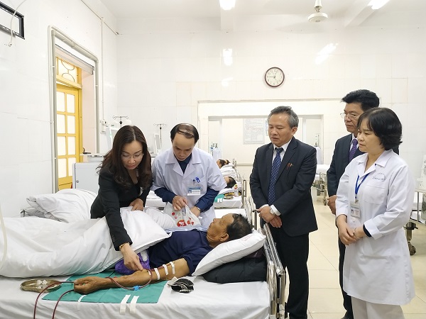 Tiến sỹ Phạm Thu Xanh thăm hỏi, động viên bệnh nhân nặng tại Khoa hồi sức tích cực BV Kiến An