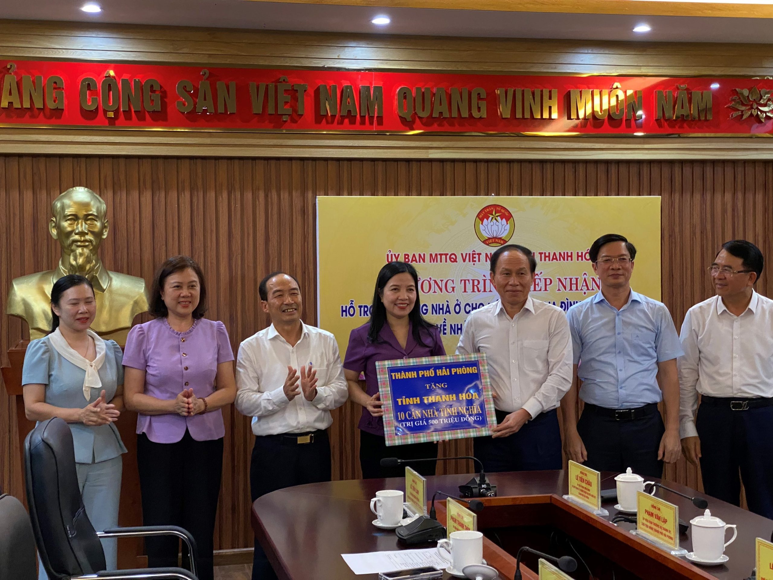 Nhân dịp này, thành phố Hải Phòng tặng tỉnh Thanh Hóa 10 căn nhà “Tình nghĩa” với tổng trị giá 500 triệu đồng, góp phần hỗ trợ địa phương thực hiện tốt chương trình xóa nghèo./.