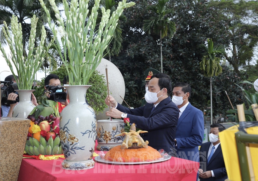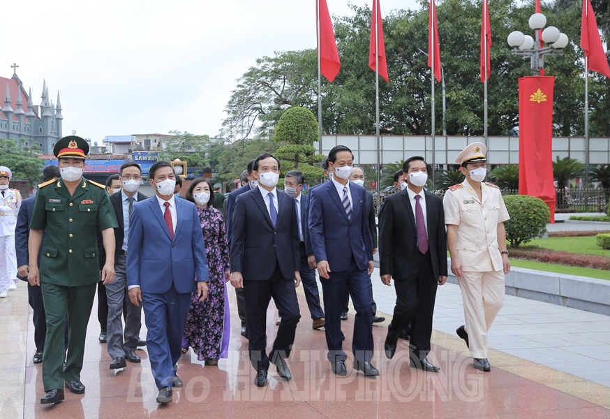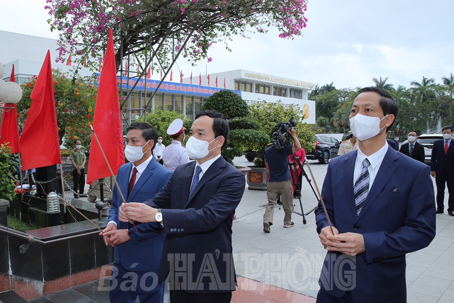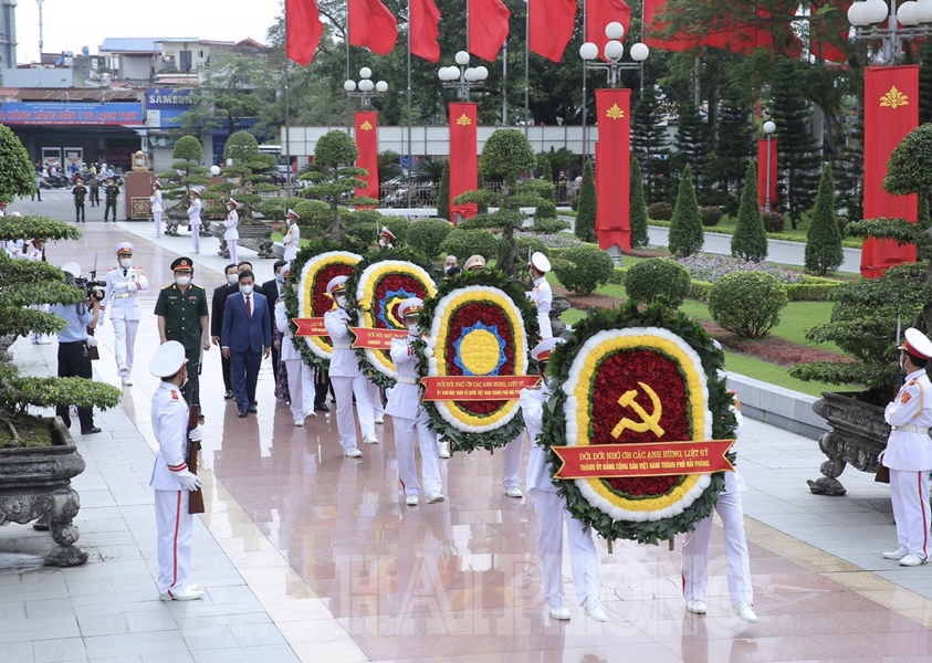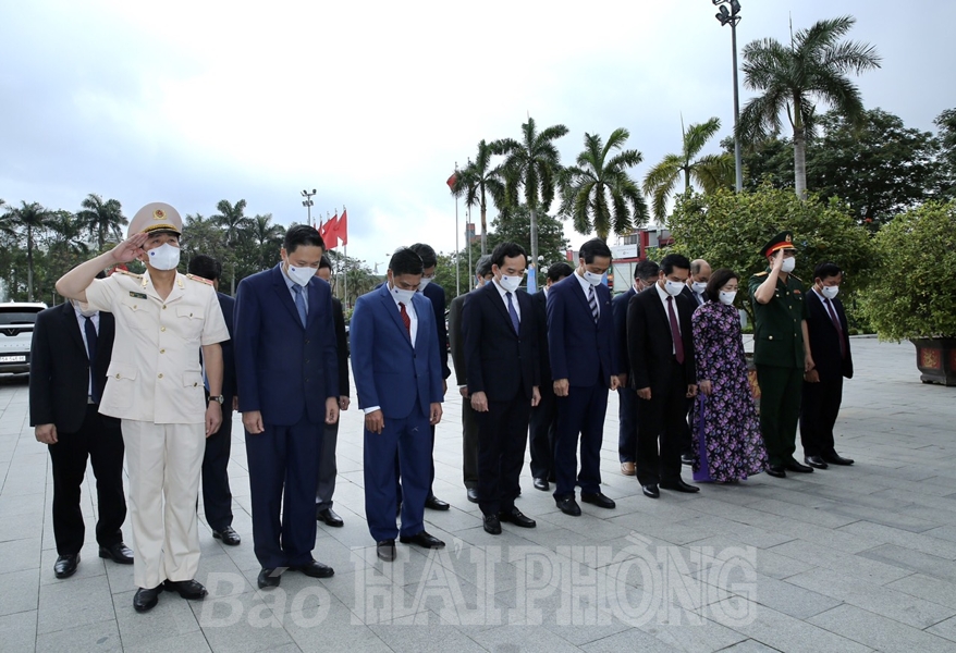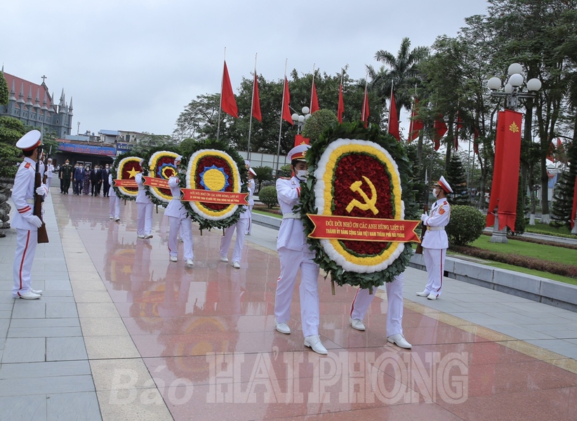 Tại Đài tưởng niệm các Anh hùng liệt sĩ, Đoàn đặt vòng hoa mang dòng chữ: “Thành ủy-HĐND-UBND-Ủy ban MTTQ Việt Nam thành phố đời đời nhớ ơn các Anh hùng liệt sĩ”. Trong không khí trang nghiêm, thành kính, Đoàn dâng hương, dành phút tưởng niệm, ghi nhớ công ơn của các Anh hùng liệt sĩ, những người con ưu tú của thành phố Cảng đã chiến đấu anh dũng, hy sinh xương máu vì sự nghiệp đấu tranh giải phóng dân tộc, vì độc lập, tự do của Tổ quốc, vì hạnh phúc của nhân dân. 66 năm qua, quân và dân thành phố kiên cường, anh dũng, làm nên những chiến công vẻ vang trong 2 cuộc kháng chiến chống thực dân Pháp và đế quốc Mỹ; năng động, đổi mới, sáng tạo, đi đầu trong xây dựng, phát triển kinh tế. Để xứng đáng với những hy sinh to lớn của các Anh hùng liệt sĩ, Đảng bộ, chính quyền và nhân dân thành phố quyết tâm phát huy truyền thống “Trung dũng-Quyết thắng”, sức mạnh đại đoàn kết toàn dân để phát triển bứt phá, cơ bản hoàn thành sự nghiệp công nghiệp hóa, hiện đại hóa vào năm 2025, khẳng định vai trò động lực phát triển của đất nước, trở thành “thành phố gương mẫu của cả nước” như lời Bác Hồ căn dặn.