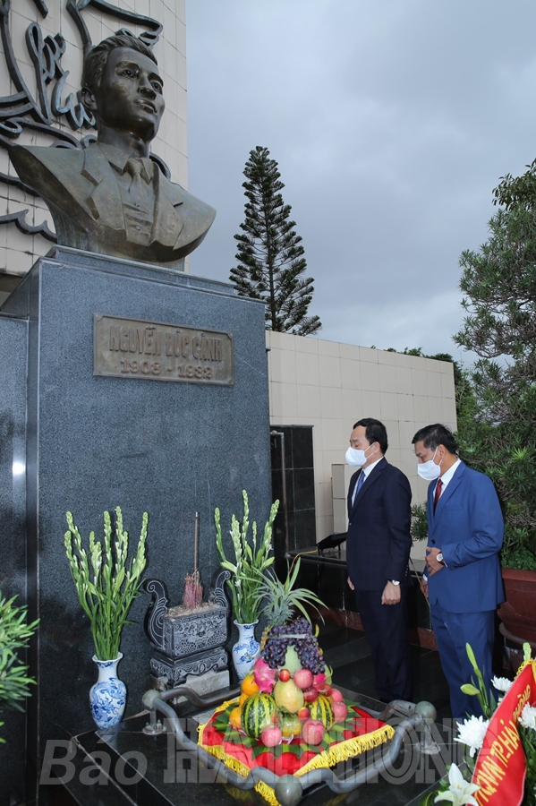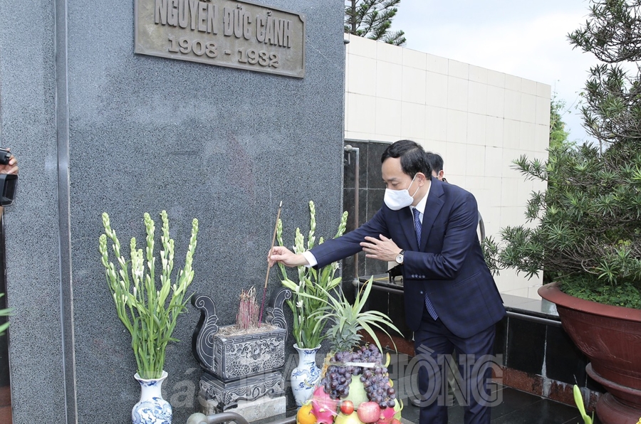 Trước tượng đài đồng chí Nguyễn Đức Cảnh trong khuôn viên Cung Văn hóa Lao động hữu nghị Việt-Tiệp, Đoàn đại biểu lãnh đạo thành phố dâng hương tưởng niệm đồng chí Nguyễn Đức Cảnh, một trong những người sáng lập Đảng Cộng sản Việt Nam, nhà lãnh đạo xuất sắc của phong trào công nhân và công đoàn Việt Nam, nguyên Bí thư xứ ủy Bắc kỳ, nguyên Chủ tịch Tổng Công hội đỏ Bắc kỳ (nay là Tổng Liên đoàn Lao động Việt Nam), Bí thư Thành ủy đầu tiên của thành phố Hải Phòng. Đoàn đại biểu lãnh đạo thành phố thành kính thắp nén tâm hương, bày tỏ lòng biết ơn sâu sắc và nguyện noi gương đồng chí Nguyễn Đức Cảnh, người chiến sĩ cộng sản trung kiên, mẫu mực./.