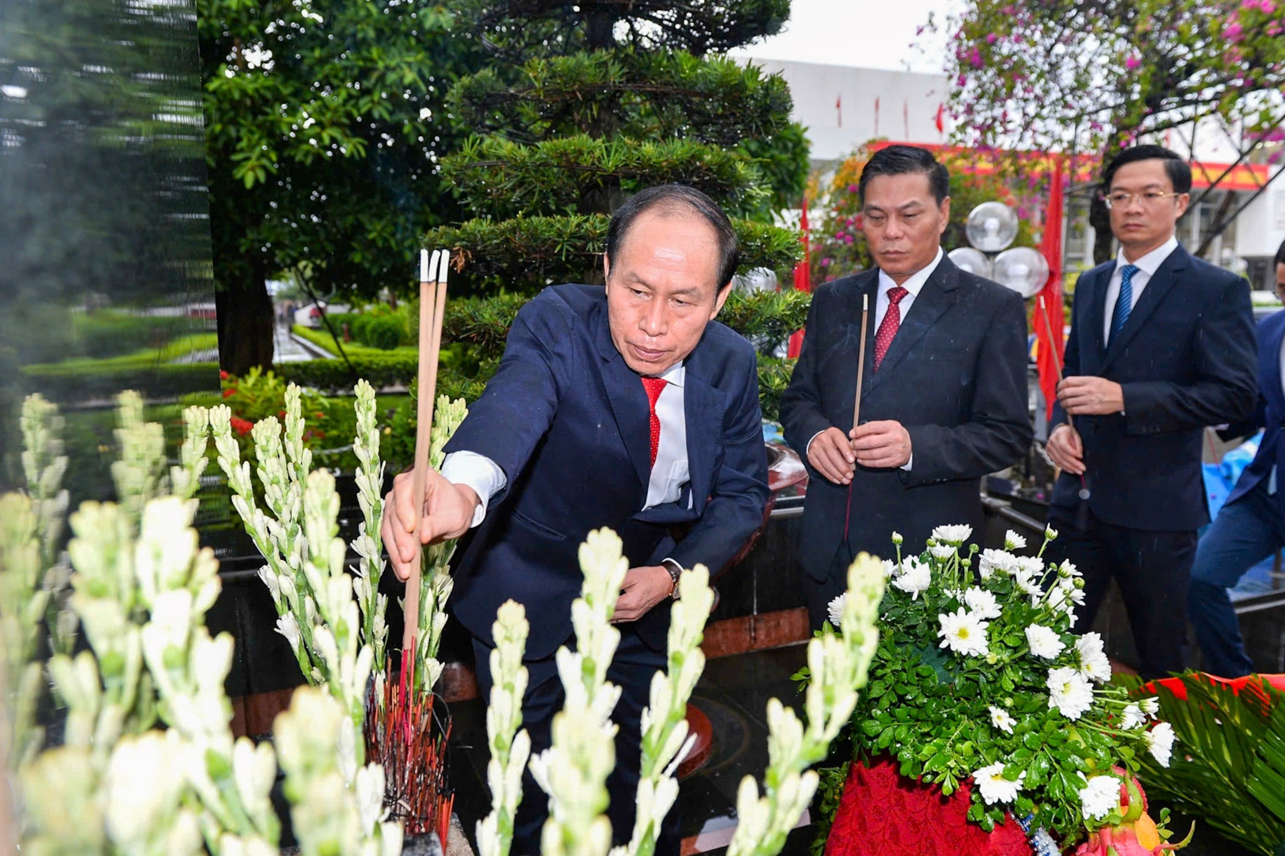 Đoàn đại biểu lãnh đạo thành phố dâng hương tại Tượng đài đồng chí Nguyễn Đức Cảnh trong khuôn viên Cung Văn hóa Lao động Hữu nghị Việt – Tiệp. Đồng chí Nguyễn Đức Cảnh – Lãnh tụ lỗi lạc của phong trào cộng sản, người sáng lập tổ chức Công hội đỏ (tiền thân của Tổng Liên đoàn lao động Việt Nam ngày nay) và là Bí thư Thành ủy đầu tiên của thành phố Hải Phòng.