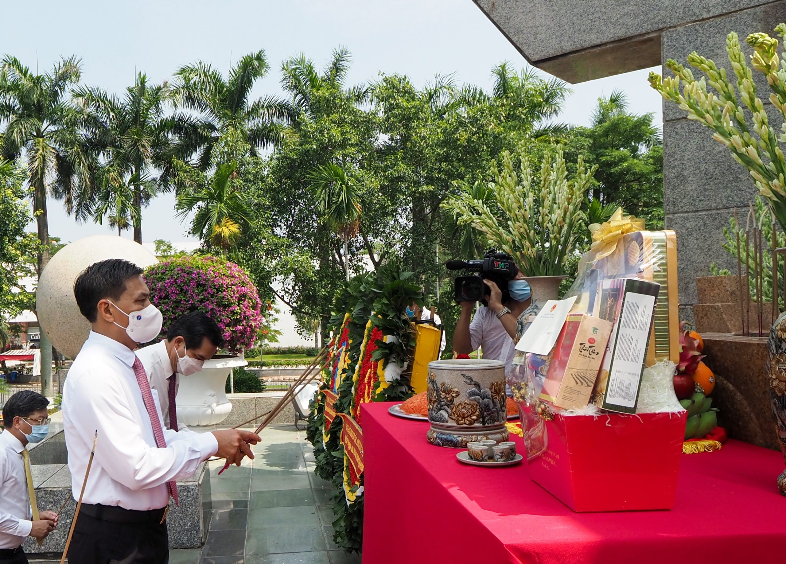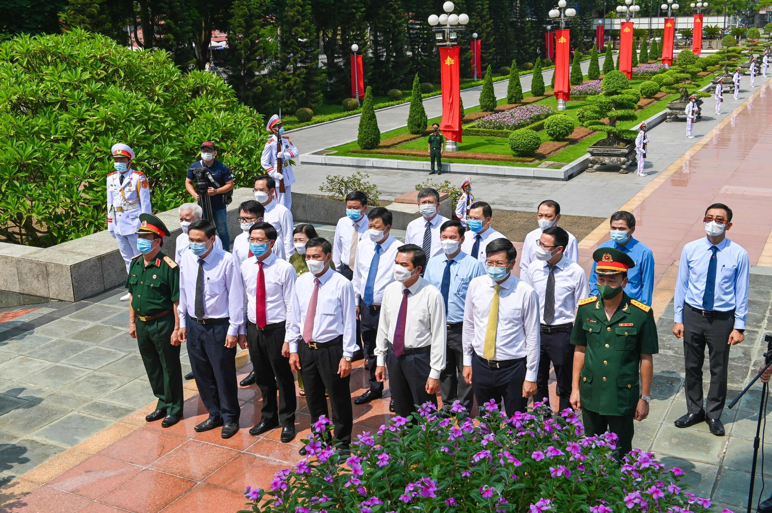 Tại Đài tưởng niệm các Anh hùng Liệt sỹ thành phố, trong không khí trang nghiêm thành kính, các đồng chí lãnh đạo thành phố đã dành phút mặc niệm tưởng nhớ anh linh các Anh hùng liệt sỹ – những người con ưu tú của dân tộc đã không tiếc máu xương, dũng cảm chiến đấu, hy sinh vì sự nghiệp đấu tranh giải phóng dân tộc, thống nhất đất nước, vì nền độc lập, tự do của Tổ quốc, vì hạnh phúc của nhân dân.