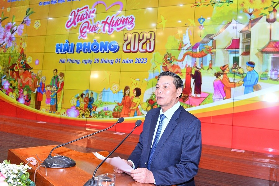 Phát biểu tại chương trình, Chủ tịch UBND thành phố Nguyễn Văn Tùng bày tỏ sự trân trọng những giá trị tốt đẹp mà bà con kiều bào cùng thân nhân đã đóng góp cho sự phát triển của thành phố trong suốt những năm qua. Thông tin nhanh tới bà con kiều bào những thành tựu nổi bật về kinh tế-xã hội trong năm 2022 của thành phố, Chủ tịch UBND thành phố khẳng định trong những kết quả đạt được có sự đóng góp không nhỏ của bà con kiều bào với 200 triệu USD kiều hối được chuyển về thành phố. Chủ tịch mong muốn bà con kiều bào tiếp tục phát huy tinh thần dân tộc, hướng về quê hương, chung tay, góp sức xây dựng và phát triển thành phố và đất nước trong khả năng, nguồn lực của mình. Về phía thành phố, Chủ tịch khẳng định luôn sẵn sàng lắng nghe tâm tư, nguyện vọng của bà con để nâng cao hơn nữa hiệu quả công tác về người Việt Nam ở nước ngoài. Trong không khí đầm ấm của ngày Xuân, Chủ tịch chúc bà con kiều bào Hải Phòng về nước đón Xuân và bà con đang sống ở nước ngoài cùng thân nhân: “Năm mới an khang, thịnh vượng và thành công”.