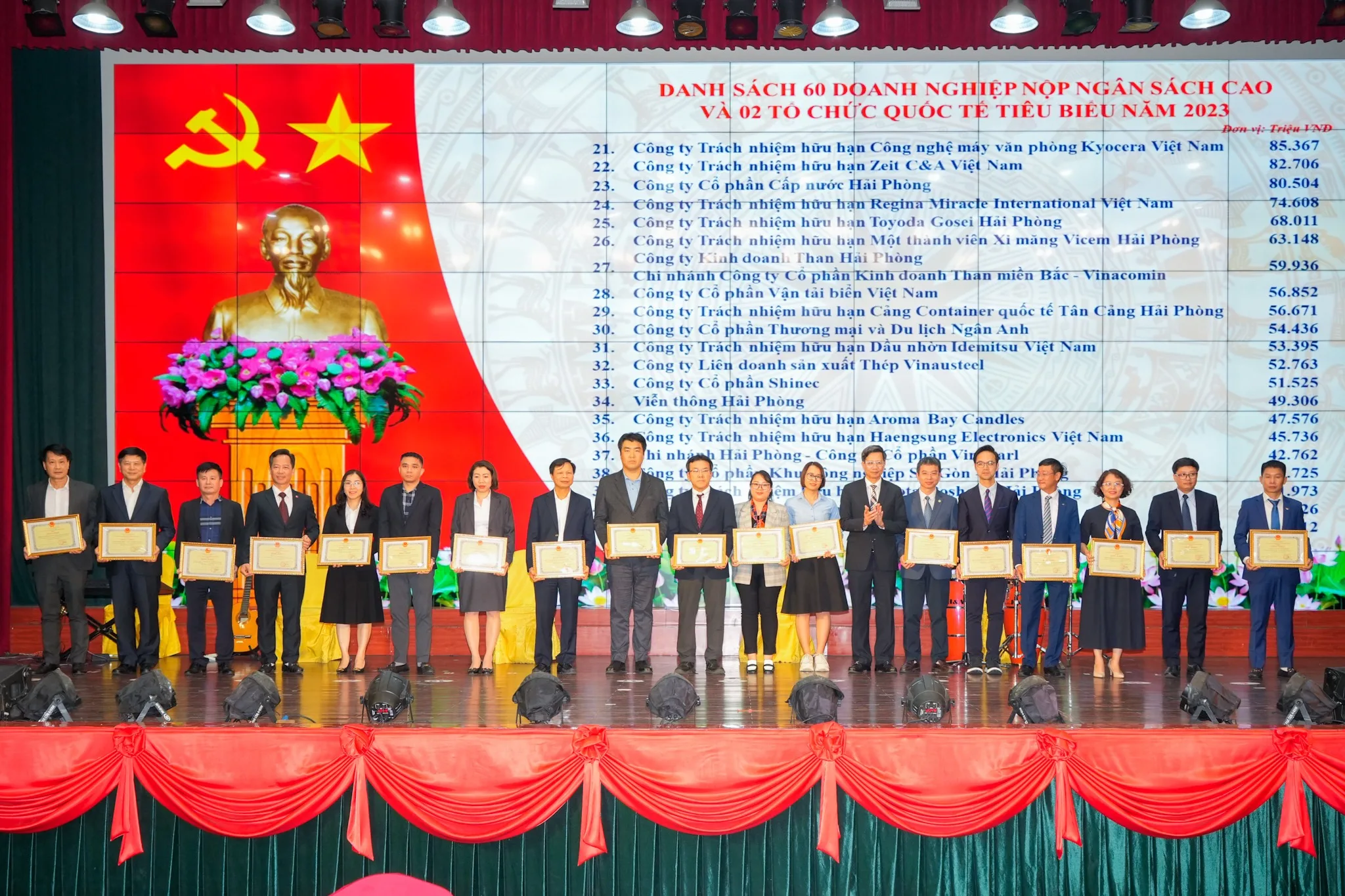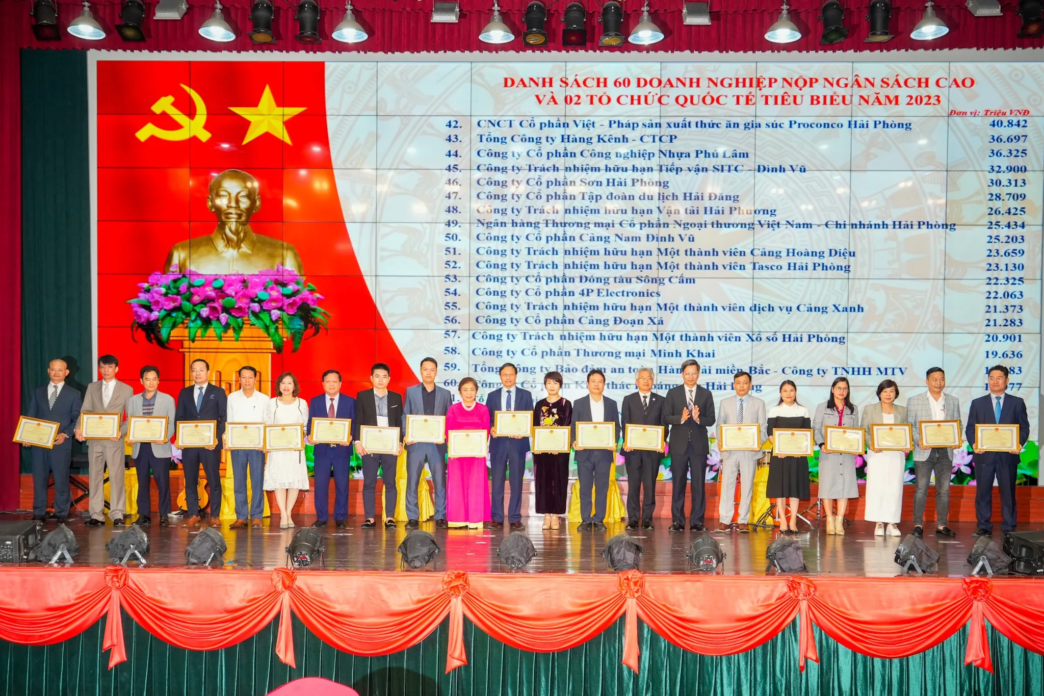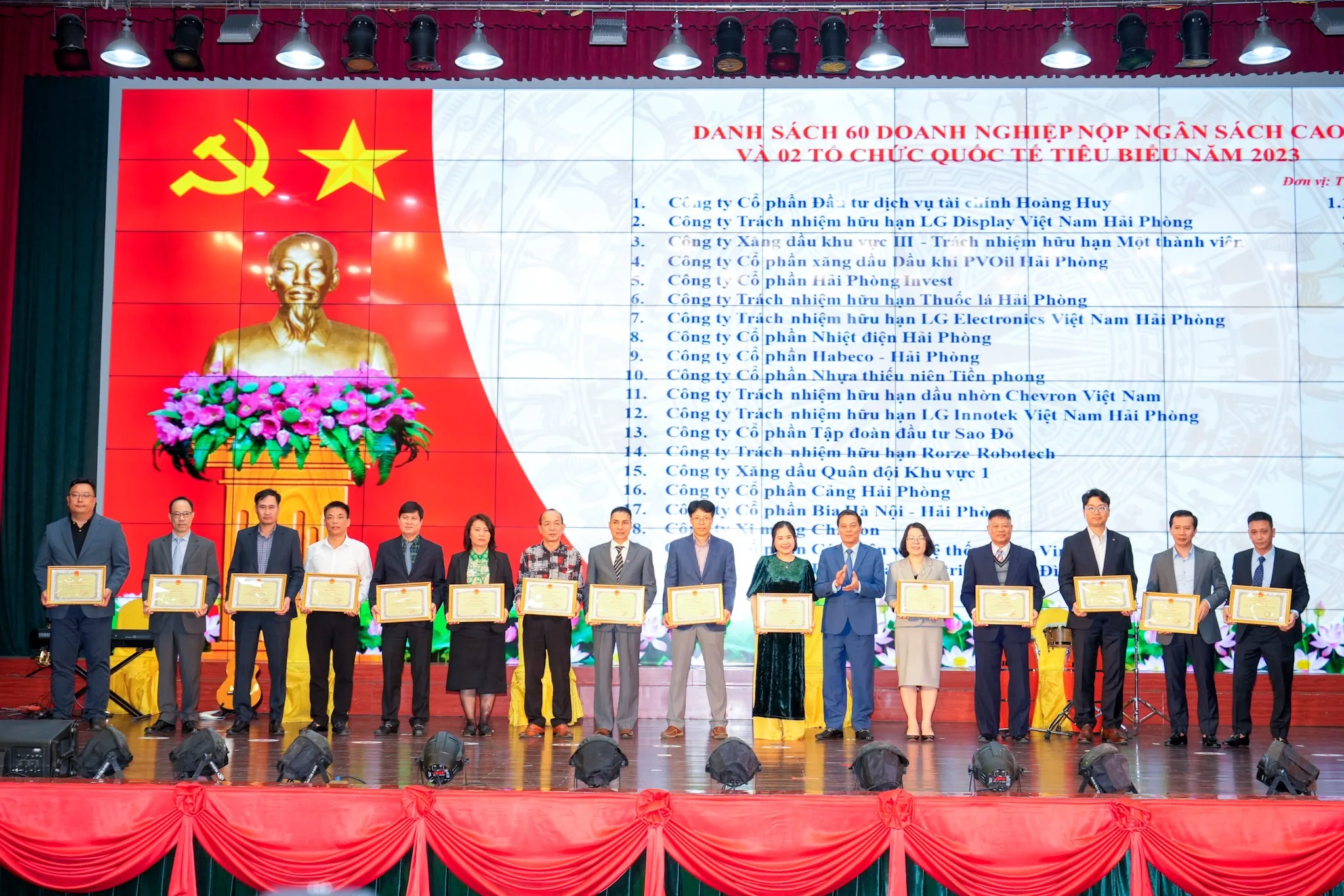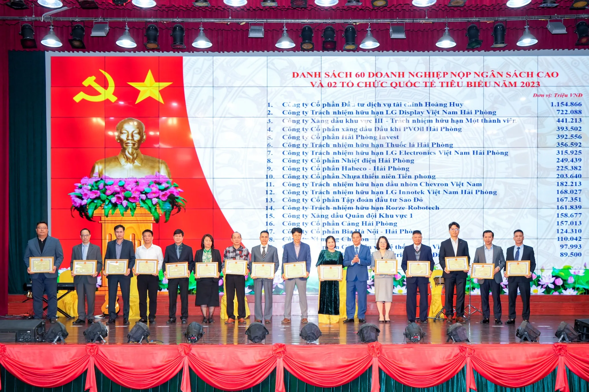 Năm qua, cộng đồng doanh nghiệp thành phố đã nỗ lực vượt qua khó khăn, không ngừng phát triển lớn mạnh. Hiện, toàn thành phố có hơn 22.000 doanh nghiệp đang hoạt động, trong đó có 3.521 doanh nghiệp thành lập mới, tăng gần 9,31% so với năm 2022. Một số doanh nghiệp nằm trong Top 500 doanh nghiệp lớn nhất Việt Nam như: Vinfast, Nhựa Tiền Phong, Việt Phát, các công ty LG, Vận tải biển Việt Nam, Cảng Hải Phòng, Hoàng Huy,… Các doanh nghiệp đã có đóng góp khá lớn cho ngân sách thành phố, đạt hơn 16.000 tỷ đồng, chiếm gần 37% tổng số thu. Trong đó, khối doanh nghiệp nhà nước Trung ương và địa phương đóng trên địa bàn đóng góp 2.512 tỷ đồng, chiếm 5,8% tổng số thu; khối doanh nghiệp FDI đóng góp 5.760 tỷ đồng, chiếm 13,25% tổng số thu; khối doanh nghiệp ngoài quốc doanh đóng góp gần 7.749 tỷ đồng, chiếm 17,93% tổng số thu. Có 9 doanh nghiệp nộp thuế trên 500 tỷ đồng, 22 doanh nghiệp nộp từ 100 đến 500 tỷ đồng, 25 doanh nghiệp nộp từ 50 đến gần 100 tỷ đồng,195 doanh nghiệp nộp từ 10 tỷ đến gần 50 tỷ đồng.