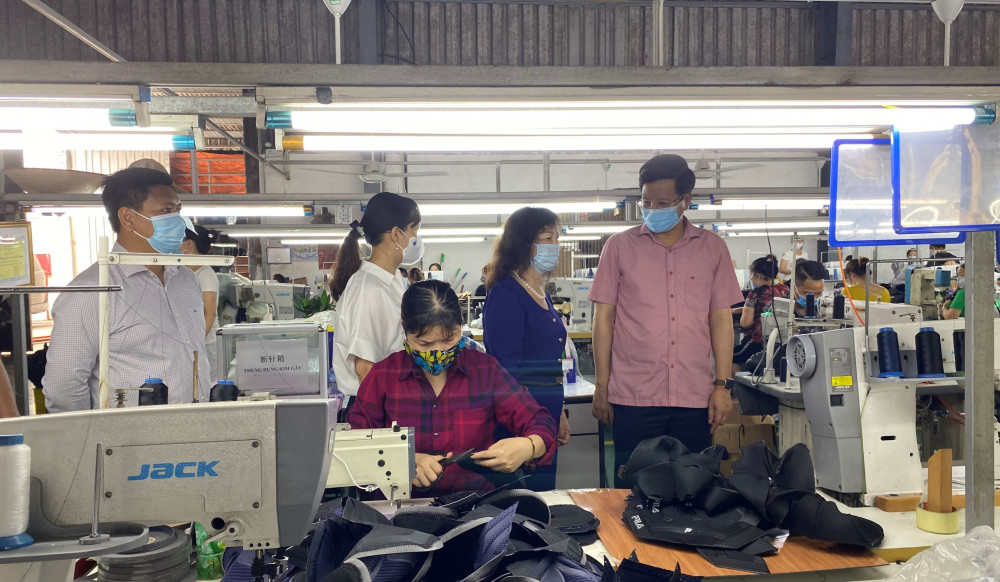 Qua kiểm tra thực tế, đồng chí Phó Chủ tịch Thường trực UBND thành phố Lê Anh Quân đề nghị các doanh nghiệp tiếp tục làm tốt công tác phòng, chống dịch bệnh theo chỉ đạo của thành phố và huyện, chủ động xây dựng các phương án phòng, chống dịch phù hợp với thực tế. Tiếp tục thực hiện mục tiêu kép “vừa phòng, chống dịch bệnh, vừa duy trì, phát triển sản xuất” nhằm đảm bảo việc làm, thu nhập cho người lao động. Đồng chí cũng lưu ý các doanh nghiệp cần tiếp tục quản lý, kiểm soát chặt thông tin người lao động đang làm việc tại doanh nghiệp, đặc biệt là các lao động ngoại tỉnh; đối với các khu vực sản xuất, cần bố trí giãn cách, tấm kính chắn, vách ngăn cách đảm bảo an toàn cho người lao động, đặc biệt tuân thủ quy định 5K của Bộ Y tế; rà soát, phát hiện sớm các trường hợp về từ vùng dịch, đi qua vùng có dịch, có yếu tố liên quan đến dịch tễ để thực hiện giám sát, xét nghiệm, cách ly y tế theo đúng quy định. Bên cạnh đó, chính quyền địa phương, các ngành chức năng cần tiếp tục đẩy mạnh tuyên truyền, nâng cao nhận thức, ý thức phòng dịch của nhân viên, công nhân và người lao động trong các doanh nghiệp; phối hợp kiểm tra, giám sát, đôn đốc việc thực hiện các quy định, chỉ đạo của thành phố và huyện trong công tác phòng, chống dịch bệnh; các doanh nghiệp không đủ điều kiện đảm bảo công tác phòng, chống dịch sẽ phải dừng hoạt động đến khi đủ điều kiện; các cá nhân, doanh nghiệp không chấp hành nghiêm quy định phòng, chống dịch COVID-19 sẽ xử lý nghiêm theo quy định của pháp luật.