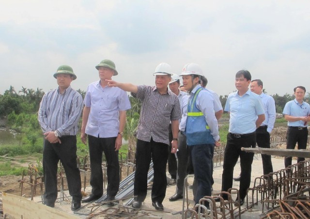 Phó Chủ tịch Thường trực UBND thành phố Nguyễn Xuân Bình kiểm tra tại hiện trường Dự án cầu Vũ Yên 1.