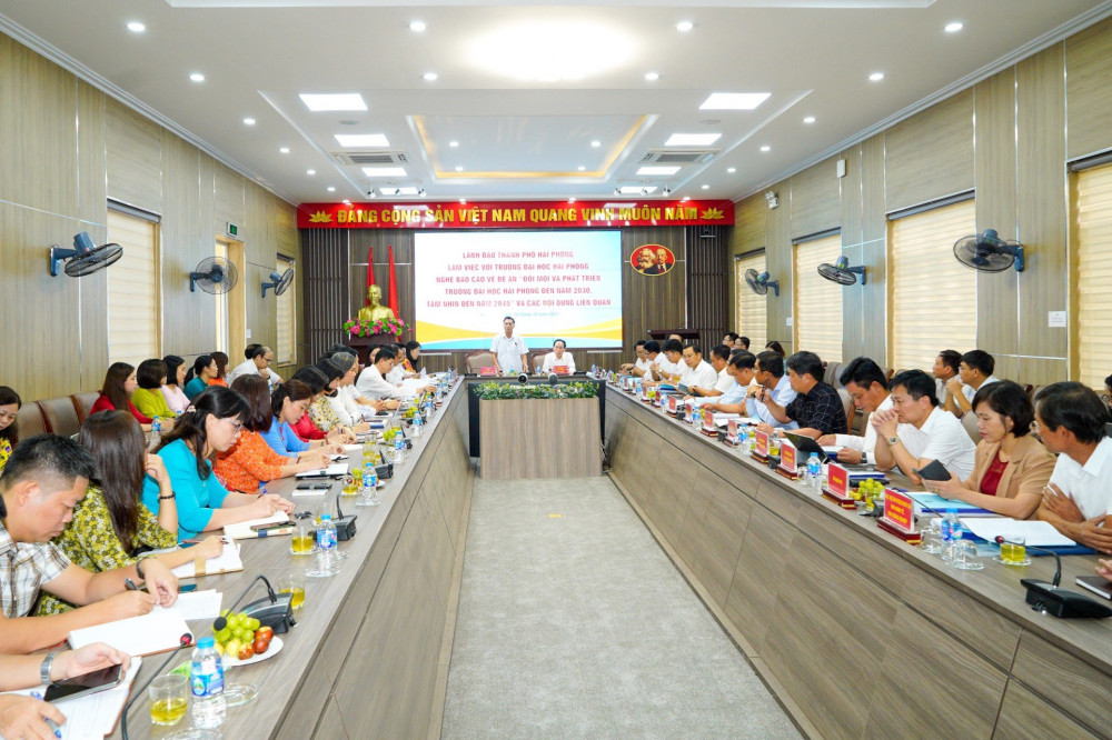 Chiều 18/10, lãnh đạo thành phố làm việc với Trường Đại học Hải Phòng nghe báo cáo về Đề án Đổi mới và phát triển Trường Đại học Hải Phòng đến năm 2030, tầm nhìn đến năm 2045.