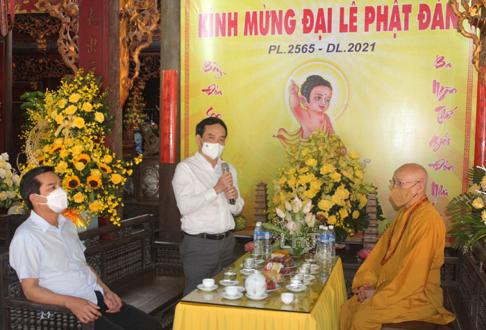 Đồng chí nhấn mạnh, Lễ Phật Đản năm nay diễn ra trong tình hình dịch bệnh COVID-19 đang có những diễn biến rất phức tạp, đồng chí đề nghị Ban Trị sự Giáo hội Phật giáo Việt Nam thành phố chỉ đạo các cơ sở thờ tự Phật giáo trên địa bàn thành phố thực hiện nghiêm các biện pháp phòng, chống dịch theo hướng dẫn của cơ quan chức năng, khuyến cáo của ngành Y tế. Đồng thời, tuyên truyền, vận động tăng ni, phật tử thực hiện nghiêm các biện pháp phòng, chống dịch.
