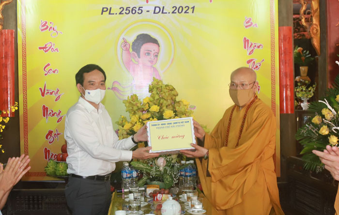 Thay mặt Ban Trị sự Giáo hội Phật giáo Việt Nam thành phố, Hòa thượng Thích Quảng Tùng, Trưởng Ban Trị sự Giáo hội Phật giáo Việt Nam thành phố Hải Phòng cảm ơn các đồng chí lãnh đạo thành phố thường xuyên quan tâm và tạo những điều kiện tốt nhất cho các hoạt động Phật sự trên địa bàn thành phố. Đồng thời bày tỏ vui mừng trước kết quả mà thành phố Hải Phòng đã đạt được trong những năm qua, nhất là những thành tựu trong thực hiện nhiệm vụ kép, vừa phòng, chống dịch bệnh COVID-19, vừa phát triển kinh tế-xã hội.