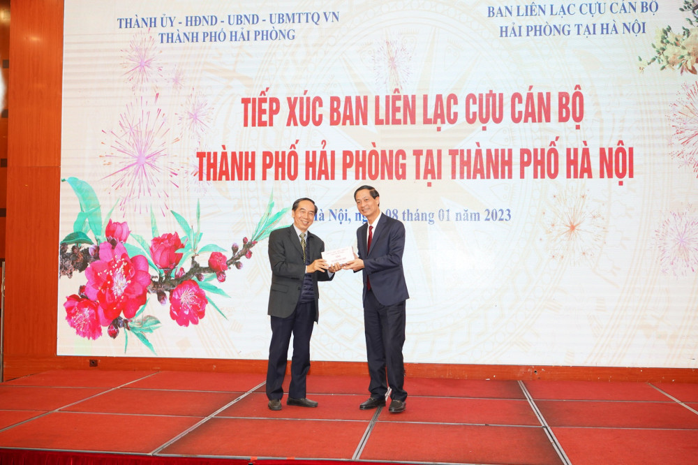 Trong không khí ấm áp chuẩn bị đón Tết cổ truyền của dân tộc, sáng 8/1, Thành ủy, HĐND, UBND, Uỷ ban MTTQ Việt Nam thành phố Hải Phòng tổ chức buổi tiếp xúc thân mật với Ban Liên lạc cựu cán bộ thành phố Hải Phòng tại Hà Nội.