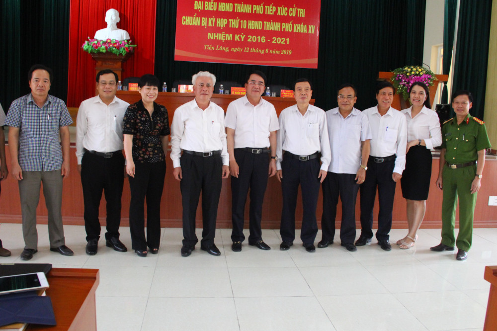 Sáng 12-6, tại Trung tâm Bồi dưỡng chính trị huyện Tiên Lãng, các đại biểu HĐND thành phố: Lê Khắc Nam, Ủy viên Ban Thường vụ Thành ủy, Phó Chủ tịch UBND TP; Nguyễn Đình Chuyến, Ủy viên Thành ủy, Phó Chủ tịch UBND TP cùng tổ đại biểu HĐND TP ứng cử tại huyện Tiên Lãng tiếp xúc với đại diện cử tri huyện Tiên Lãng.