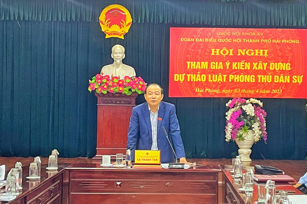 Chiều 3/4, Đoàn đại biểu Quốc hội thành phố tổ chức Hội nghị tham gia lấy ý kiến xây dựng dự thảo Luật Phòng thủ dân sự. Phó Trưởng đoàn đại biểu Quốc hội chuyên trách Lã Thanh Tân chủ trì Hội nghị. Cùng dự có đại diện các Sở, ngành và tổ chức liên quan.