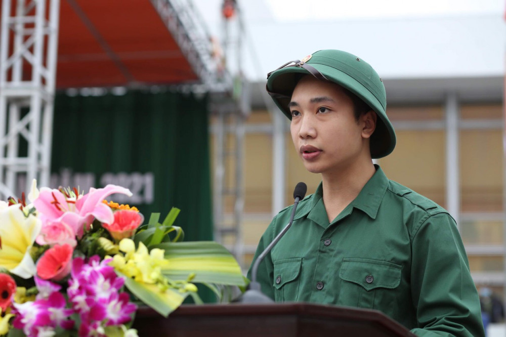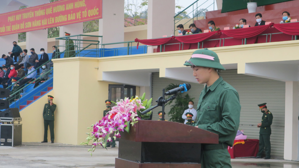 Trong không khí trang nghiêm của buổi lễ, tân binh Trần Việt Tuấn thay mặt cho thanh niêu ưu tú của quận Ngô Quyền hứa sẽ quyết tâm rèn luyện, phấn đấu hoàn thành tốt mọi nhiệm vụ được giao trong thời gian thực hiện quân ngũ.
