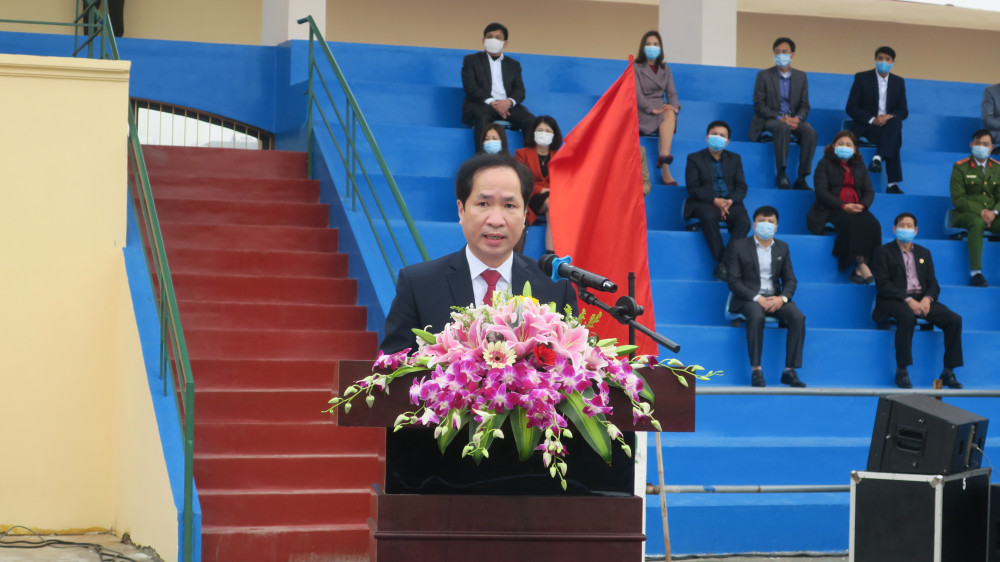 Tại buổi lễ, đại diện lãnh đạo huyện và các tổ chức đoàn thể địa phương tặng hoa, động viên các tân binh lên đường nhập ngũ, cố gắng rèn luyện, phấn đấu hoàn thành tốt nhiệm vụ được giao.