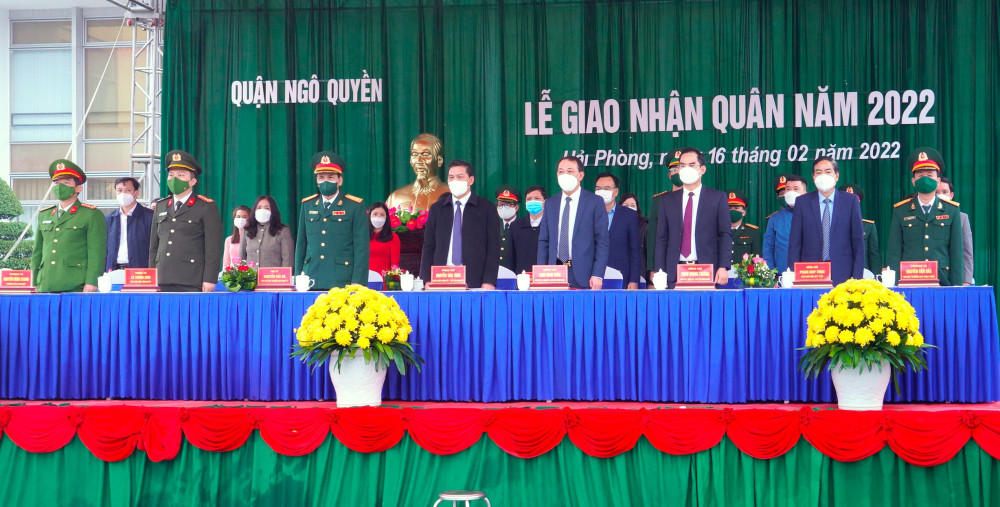 *** Sáng 16/2, tại Cung Văn hóa hữu nghị Việt-Tiệp, Quận ủy, UBND, Ban Chỉ huy quân sự quận Ngô Quyền tổ chức Lễ giao, nhận quân năm 2022. Tới dự Lễ giao nhận quân có đồng chí Nguyễn Văn Tùng, Phó Bí thư Thành ủy, Chủ tịch UBND thành phố; đại diện lãnh đạo một số Sở, ban, ngành chức năng thành phố và lãnh đạo quận Ngô Quyền.