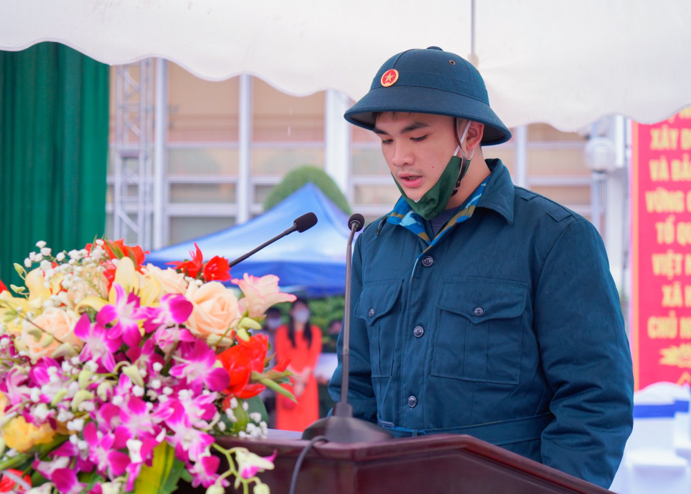 Trong không khí trang trọng của Lễ tòng quân, tân binh Vũ Văn Mạnh thay mặt cho thanh niêu ưu tú của quận Ngô Quyền hứa sẽ quyết tâm rèn luyện, phấn đấu hoàn thành tốt mọi nhiệm vụ được giao trong thời gian thực hiện quân ngũ.