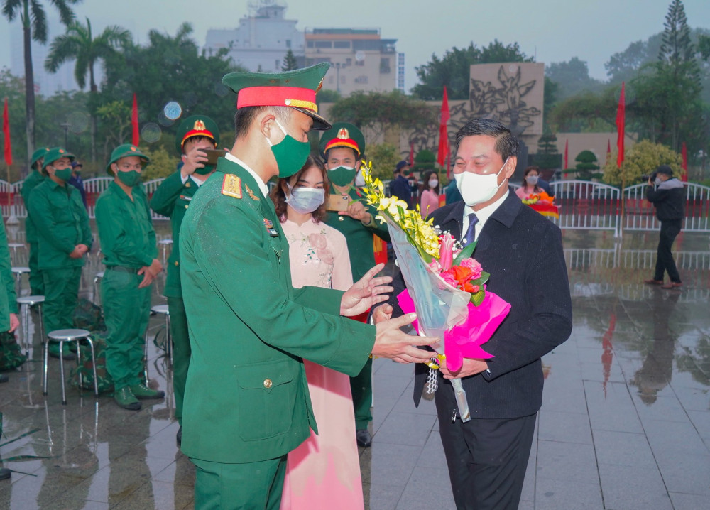 Tại lễ giao, nhận quân, Chủ tịch UBND thành phố Nguyễn Văn Tùng cùng các đại biểu đã tặng hoa chúc mừng các tân binh, đơn vị nhận quân và động viên các tân binh cố gắng học hỏi, rèn luyện, hoàn thành tốt huấn luyện và nhiệm vụ Tổ quốc giao.