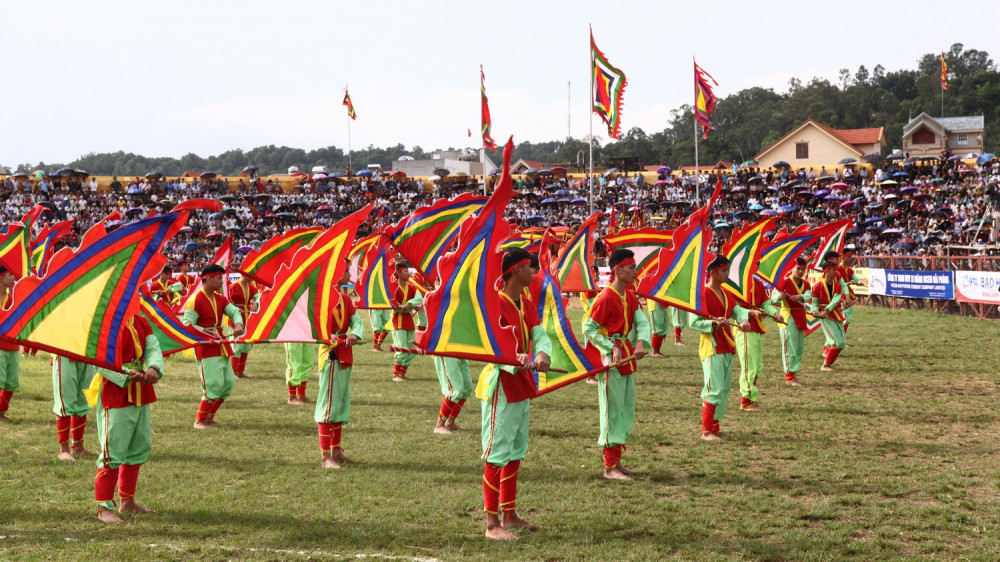 Màn múa cờ khai hội (Ảnh: Phan Tuấn)