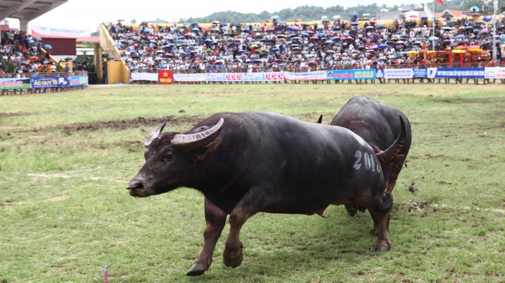 Mở màn là kháp đấu số 1 giữa 2 trâu số 01 của chủ trâu Hoàng Gia Huyền (phường Ngọc Xuyên) và trâu số 08 của chủ trâu Lưu Đình Tới (phường Vạn Hương). Chỉ trong vòng 43 giây, với những đòn đánh hổ lao, trâu số 01 của ông Hoàng Gia Huyền đã giành vé vào vòng tứ kết.