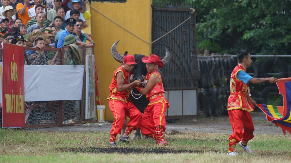 Sau nghi thức thượng cờ lễ hội, phát biểu khai mạc và đánh trống khai hội của ông Hoàng Xuân Minh – Chủ tịch UBND quận Đồ Sơn, Trưởng BTC Lễ hội là màn tấu trống, chiêng đầy hấp dẫn. Tiếng loa thông báo khai cuộc vang lên cũng là lúc 16 ông trâu lâm trận, lần lượt tham gia thi đấu theo thể thức loại trực tiếp. Thực hiện đúng quy định của BTC, năm nay, mỗi ông trâu thi đấu chỉ được 2 người đưa vào sới chọi.