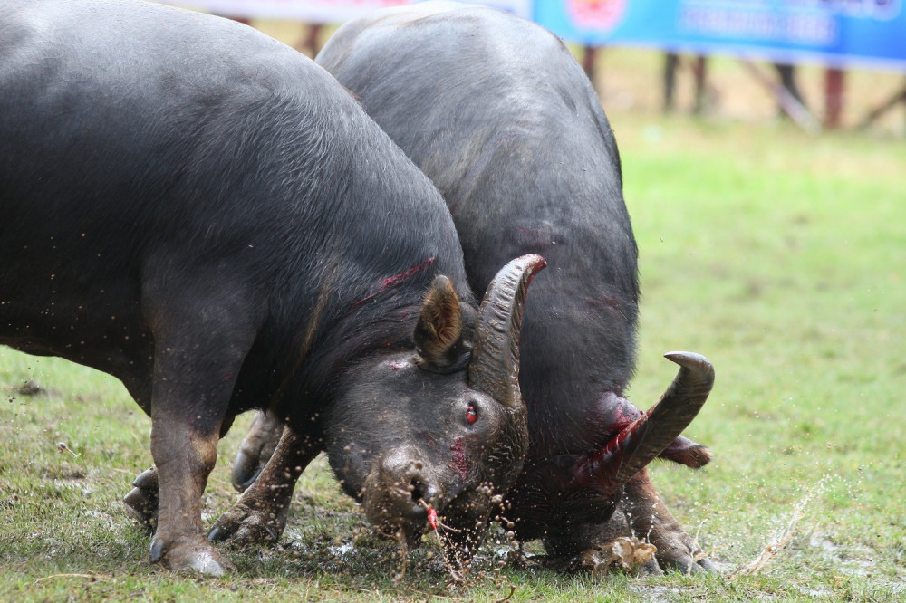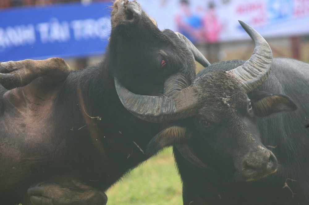 Hai ông trâu ghìm nhau tại kháp đấu tứ kết (Ảnh: Phan Tuấn)
