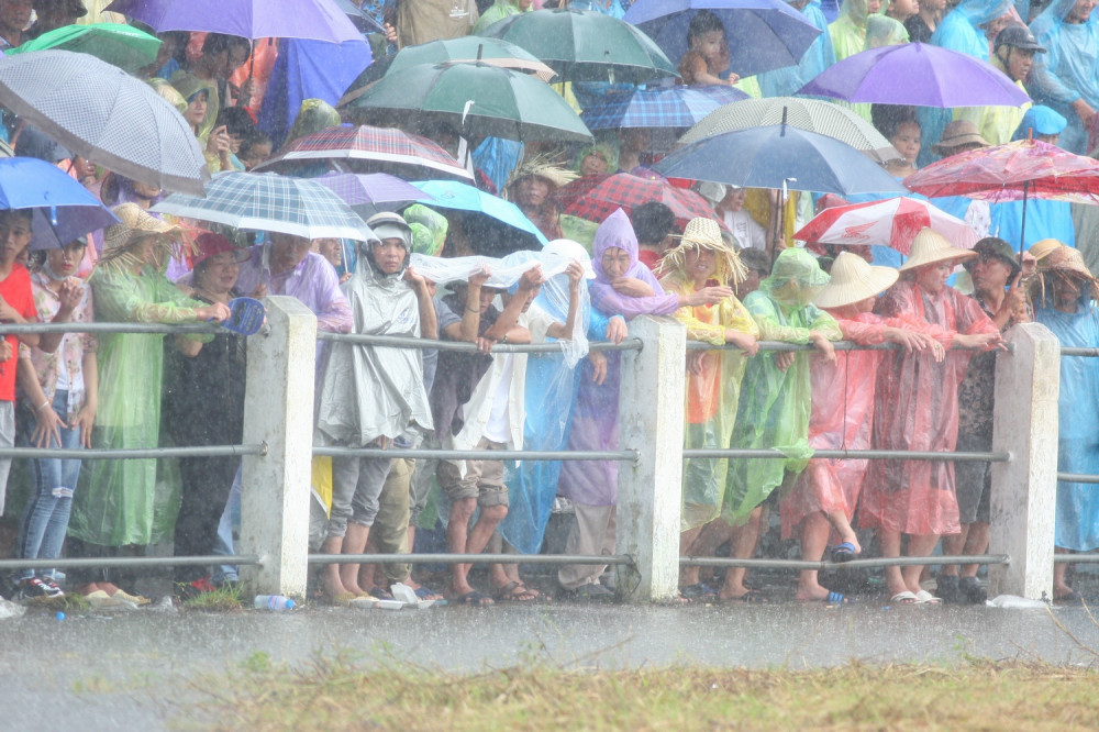 Khán giả đội mưa cổ vũ cho các kháp đấu (Ảnh: Phan Tuấn)