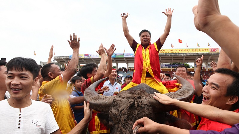 Màn ăn mừng chiến thắng ông trâu số 12 giành chức vô địch (Ảnh: Phan Tuấn)