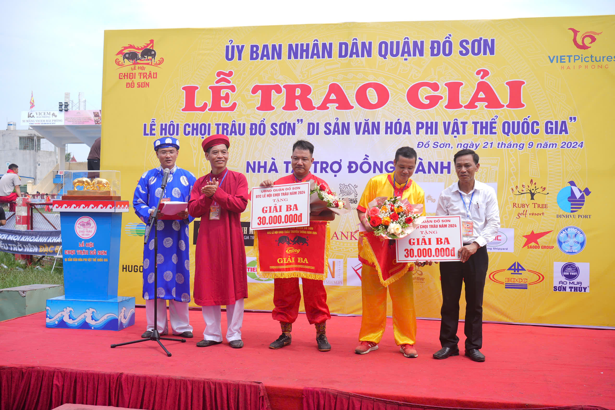 Bên cạnh đó, Ban Tổ chức trao giải cặp trâu chọi hay nhất cho trâu số 14 đến từ phường Vạn Hương của ông chủ trâu Đinh Xuân Thủy và trâu số 13 đến từ phường Hợp Đức của ông chủ trâu Trần Thanh Liêm; trao giải trâu có miếng đánh hay nhất cho trâu số 13 đến từ phường Hợp Đức của ông chủ trâu Trần Thanh Liêm.
