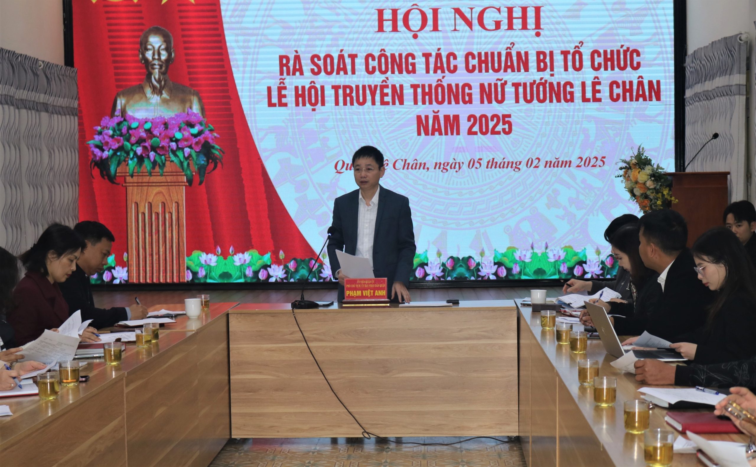 Sáng 5/2, UBND quận Lê Chân tổ chức họp rà soát công tác chuẩn bị tổ chức Lễ hội truyền thống Nữ tướng Lê Chân năm 2025. Phó Chủ tịch UBND quận Phạm Việt Anh chủ trì cuộc họp.