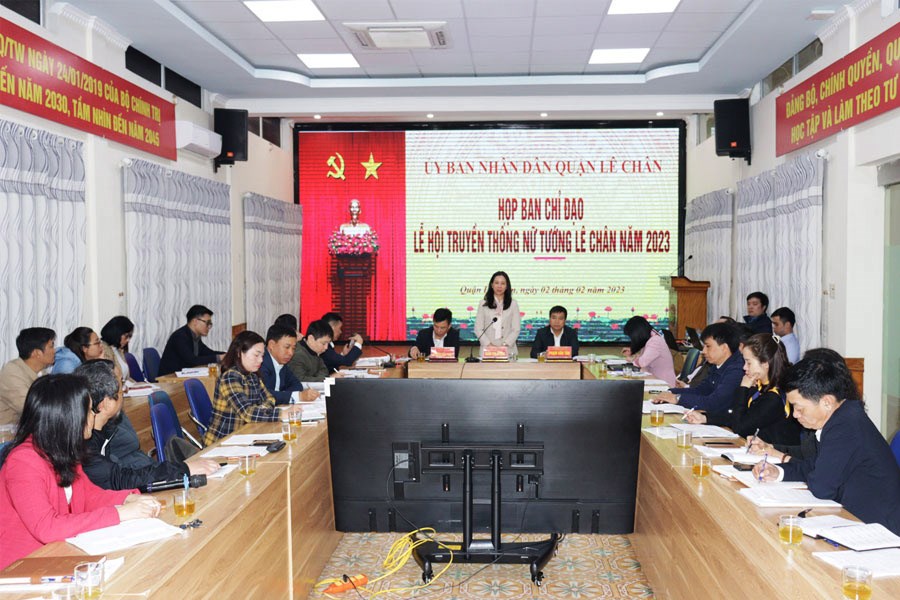 Sáng 2/2, UBND quận Lê Chân tổ chức Họp Ban Chỉ đạo Lễ hội truyền thống Nữ tướng Lê Chân năm 2023. Đồng chí Trần Thu Hương, Ủy viên Thành ủy, Bí thư Quận ủy dự và chỉ đạo cuộc họp. Dự cuộc họp có đại diện lãnh đạo Sở Văn hóa và Thể thao và các đơn vị liên quan.