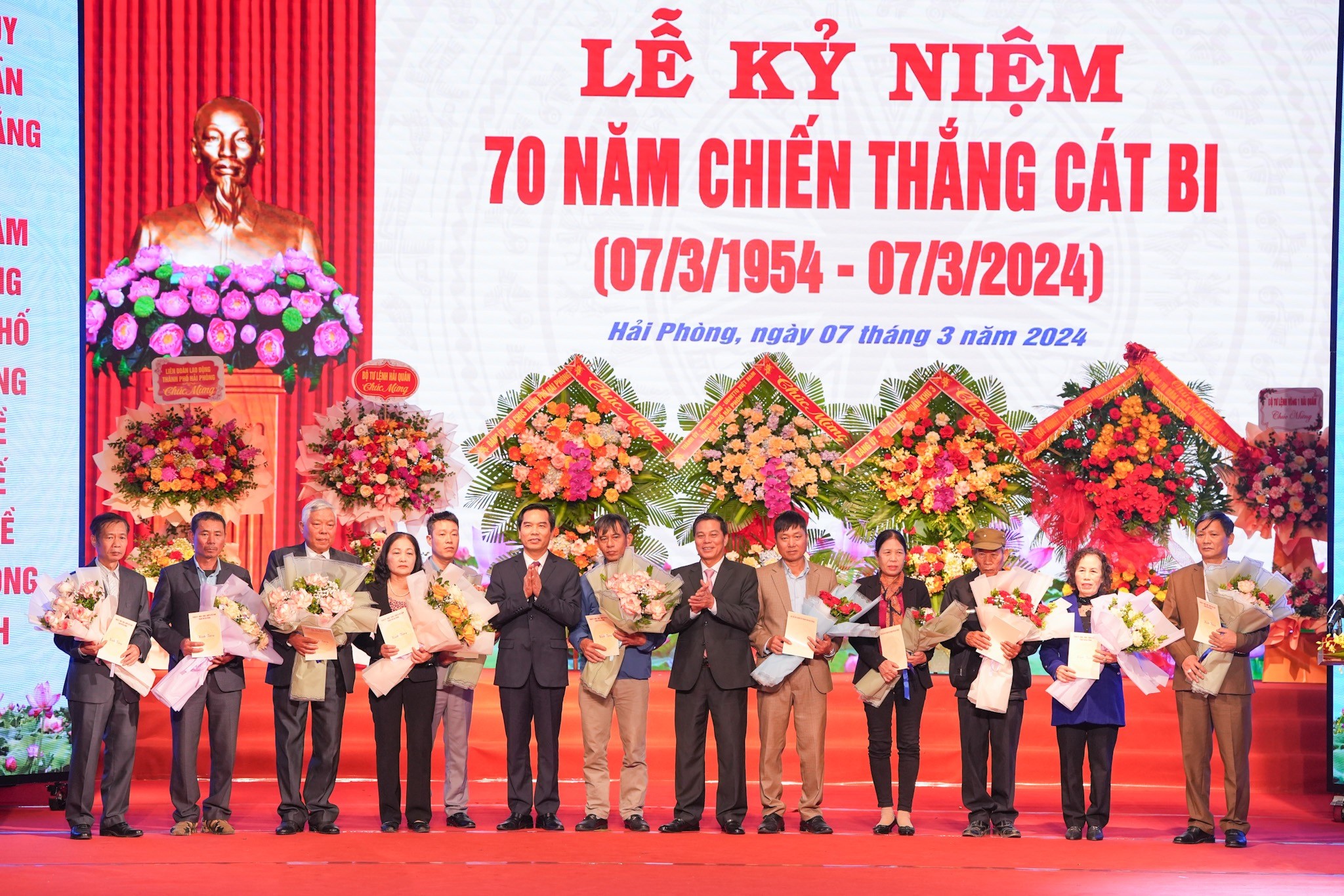 Tại Lễ Kỷ niệm, lãnh đạo Thành ủy, HĐND, UBND, Ủy ban MTTQ Việt Nam thành phố đã trao tặng quà cho đại biểu Dũng sĩ Cát Bi cùng đại diện gia đình các Liệt sĩ, Dũng sĩ Cát Bi.