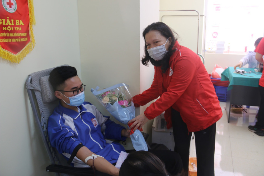 Ngay sau Lễ mít tinh, rất đông người dân và sinh viên trường Đại học Hàng Hải tham gia hiến máu tình nguyện, góp phần tích cực vào kết quả chung của thành phố trong năm 2022.