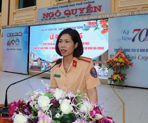 Phát biểu tại buổi Lễ, Phó Giám đốc Công an thành phố Bùi Trung Thành nhấn mạnh Lễ phát động tuyên truyền ATGT và ra mắt chuyên mục “Cảnh sát giao thông – Vì bình yên mỗi tuyến đường” cũng là bước nhằm cụ thể hóa trong công tác tuyên truyền, đồng thời phát huy vai trò của lực lượng CSGT và các cơ quan báo chí trong việc đẩy mạnh công tác giáo dục, tuyên truyền pháp luật về ATGT, văn hóa giao thông đến với tất cả người dân thành phố, nhất là đối tượng học sinh cấp THPT tại các khu vực địa bàn trọng điểm, góp phần kéo giảm tình hình TNGT trên địa bàn thành phố, đảm bảo các chỉ số an ninh, an toàn hướng đến xây dựng Hải Phòng trở thành thành phố thực sự an toàn và văn minh.