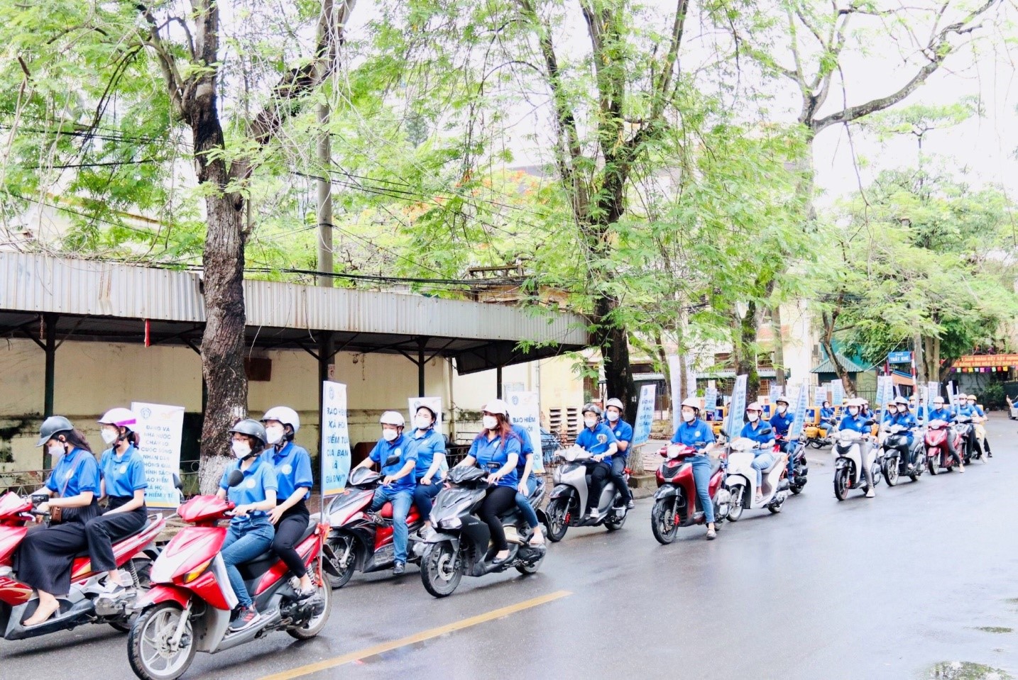 Các đoàn cổ động, diễu hành gồm 01 ô tô và 30 xe máy được trang trí chạy trên các tuyến đường theo lộ trình: BHXH Thành phố – đường Đinh Tiên Hoàng – đường Quang Trung – đường Trần Nguyên Hãn – đường Tô Hiệu – đường Hồ Sen mới – Cầu Vượt Nguyên Văn Linh (quay đầu) – đường Hồ Sen mới – đường Tô Hiệu – đường Lạch Tray – Cầu Rào (quay đầu) – đường Lạch Tray – Cầu Đất – Trần Phú – Minh Khai – Trần Quang Khải – Hoàng Văn Thụ – BHXH Thành phố.