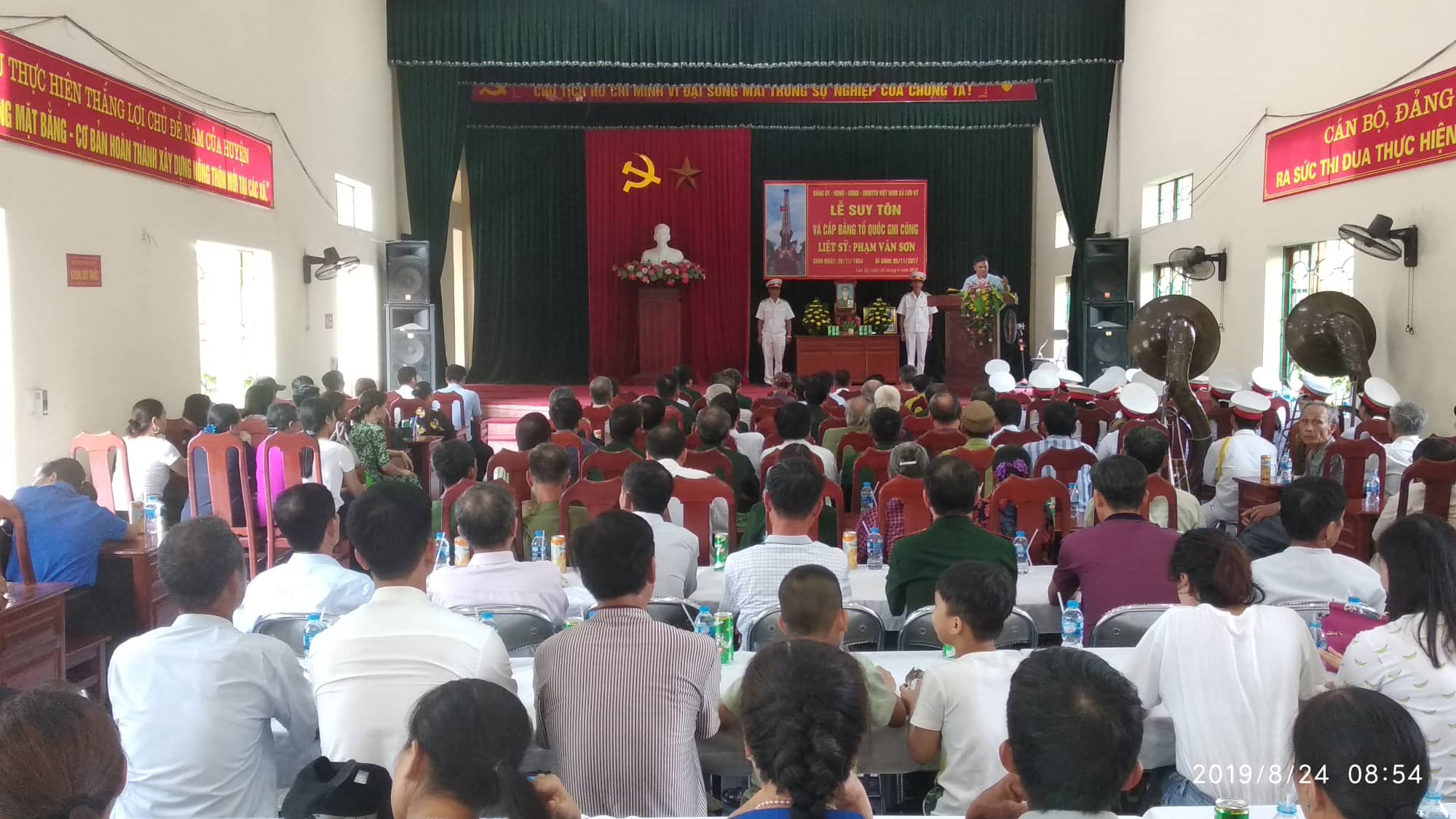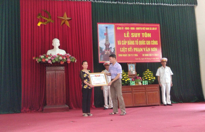Sáng ngày 24/8, UBND xã Lưu Kỳ, huyện Thủy Nguyên, thành phố Hải Phòng đã tổ chức lễ suy tôn và trao bằng tổ quốc ghi công cho thân nhân liệt sỹ Phạm Văn Sơn.