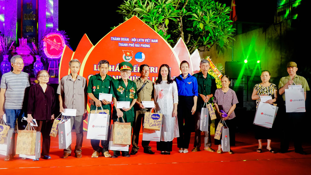 Nhân dịp này, Ban tổ chức trao 20 suất quà, trị giá 35 triệu đồng tặng các gia đình chính sách, thương bệnh binh có hoàn cảnh khó khăn trên địa bàn quận Lê Chân. Các đồng chí lãnh đạo, các vị đại biểu, các đoàn viên, thanh niên thắp hương, đặt hoa, nến tại các phần mộ liệt sỹ.