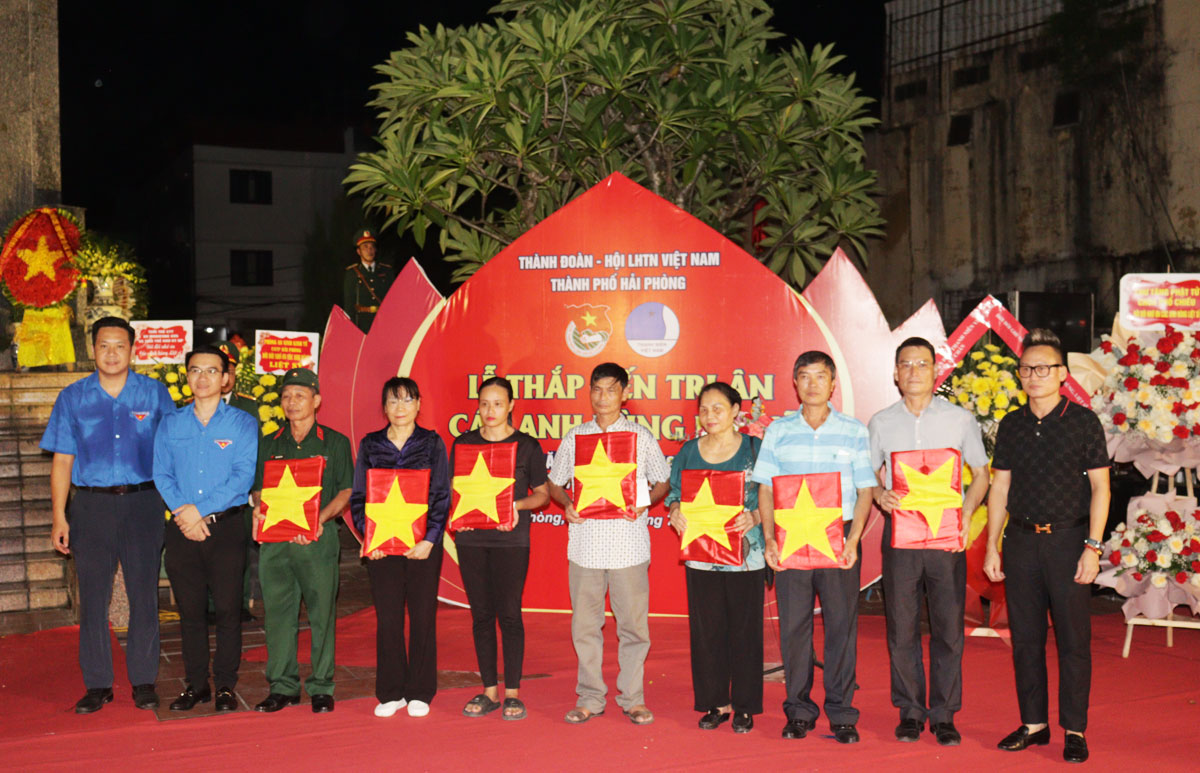 Tại buổi Lễ, Ban Tổ chức chương trình đã trao 18 ảnh phục chế cho thân nhân liệt sỹ; tặng 38 suất quà trị giá 35 triệu đồng đến các các gia đình chính sách của phường Dư Hàng Kênh (quận Lê Chân); trao tặng 02 nhà nhân ái cho cựu thanh niên xung phong trị giá 100 triệu đồng. Tổng giá trị nguồn lực cho chương trình Lễ thắp nến tri ân là 130 triệu đồng.