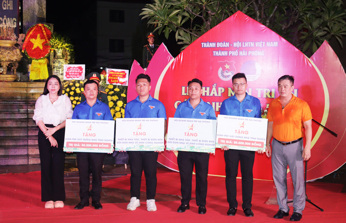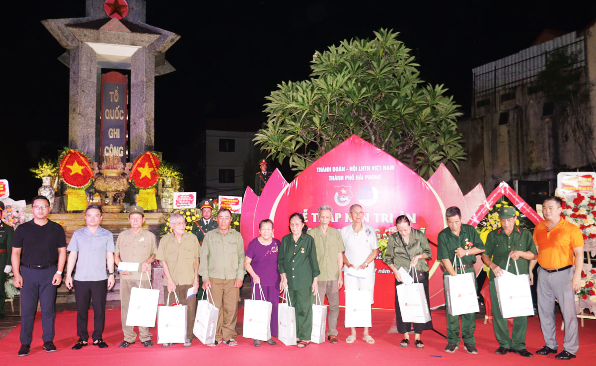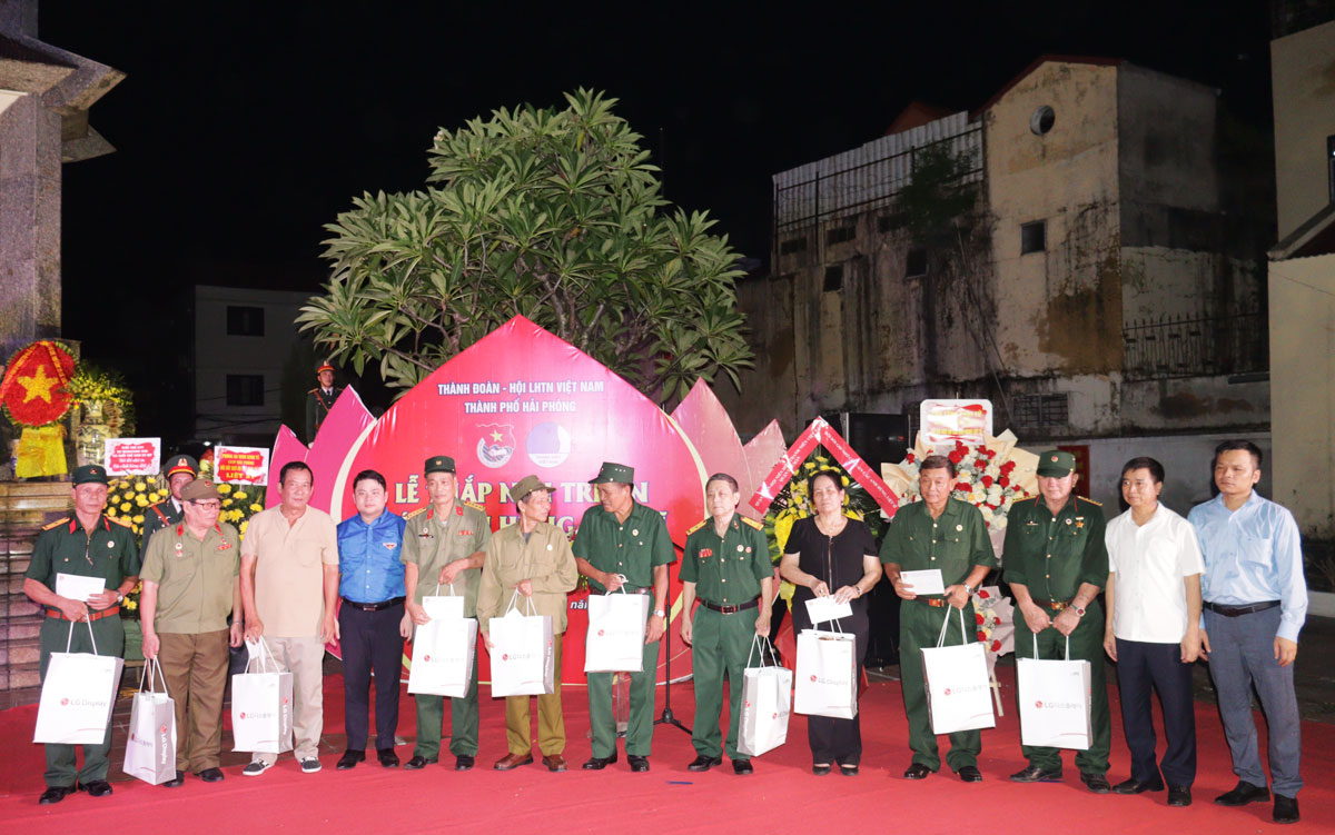 Tại cấp thành phố, Ban Thường vụ Thành đoàn đã triển khai một chuỗi các hoạt động, cụ thể: Huy động nguồn lực, hỗ trợ kinh phí xây, sửa chữa 01 nhà cho cựu thanh niên xung phong có hoàn cảnh khó khăn trên địa bàn huyện Tiên Lãng trị giá 70 triệu đồng; tổ chức “Bữa cơm sum vầy-Ấm áp yêu thương” cho 3 bà Mẹ Việt Nam anh hùng và gia đình thân nhân liệt sỹ tại quận Ngô Quyền, Lê Chân, Hồng Bàng và huyện Tiên Lãng; triển khai mô hình Phục chế ảnh chân dung liệt sỹ cho 24 gia đình thân nhân liệt sỹ; tổ chức chương trình khám bệnh, phát thuốc và tặng quà cho150 gia đình chính sách, cựu thanh niên xung phong tại xã Hùng Thắng, huyện Tiên Lãng, kinh phí thuốc và quà tặng 50 triệu đồng.